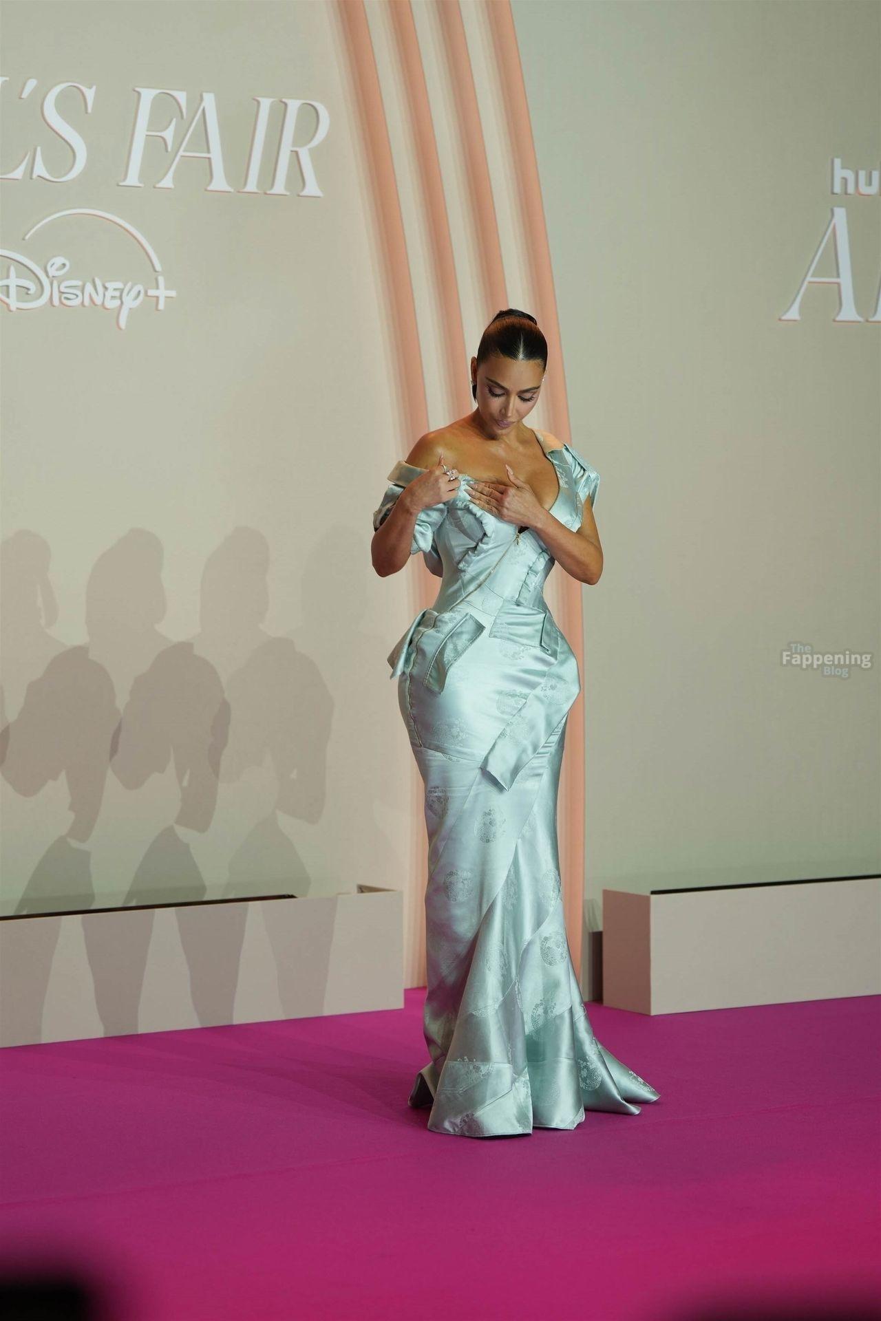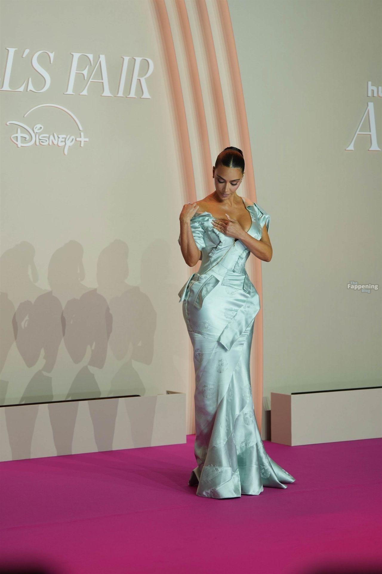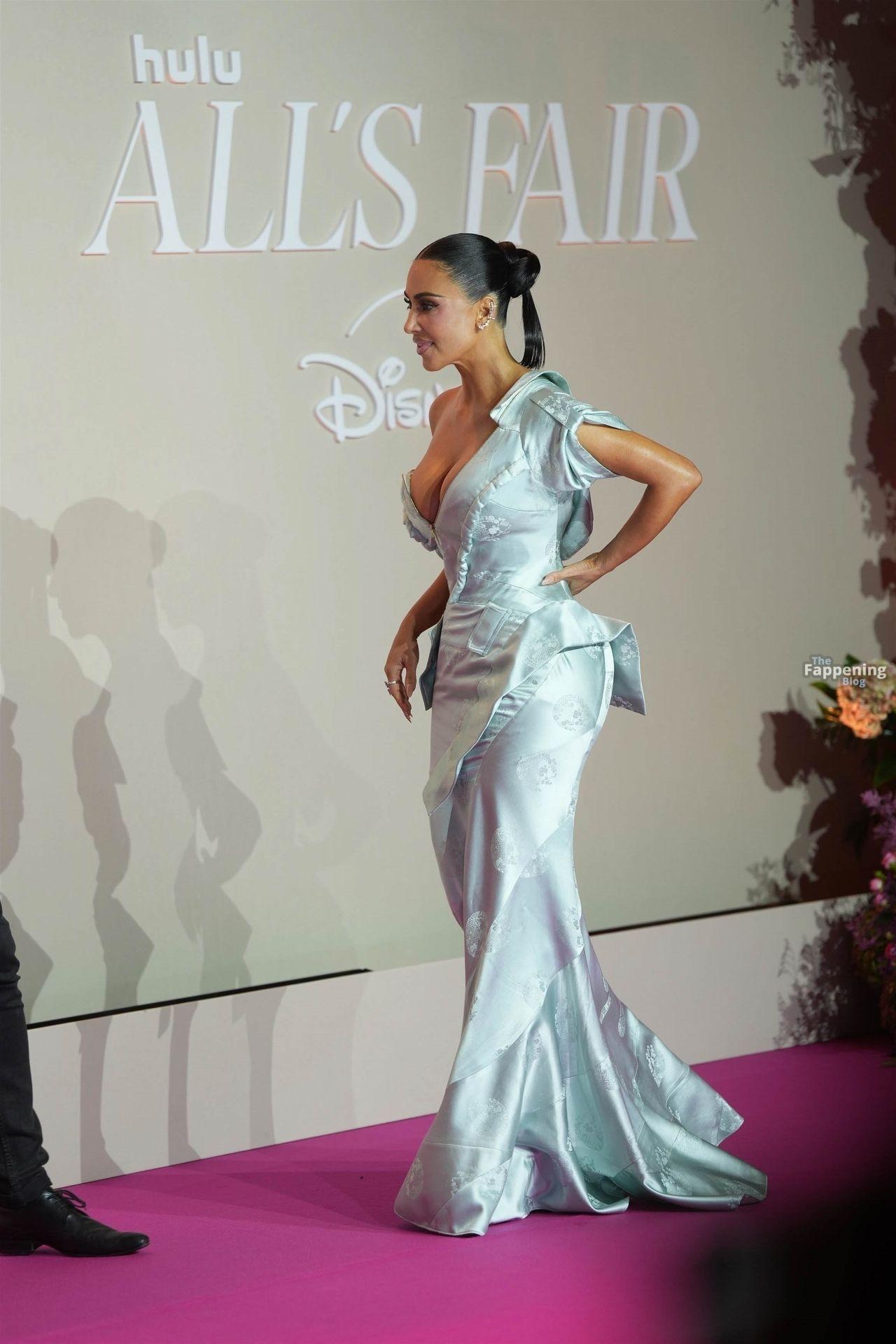 Kim Kardashian showed up at the “All’s Fair” Disney+ Premiere at Maison de La Chimie in Paris, rockin’ a vintage Dior gown from John Galliano’s spring 2000 collection that had her massive boobs nearly spillin’ out.