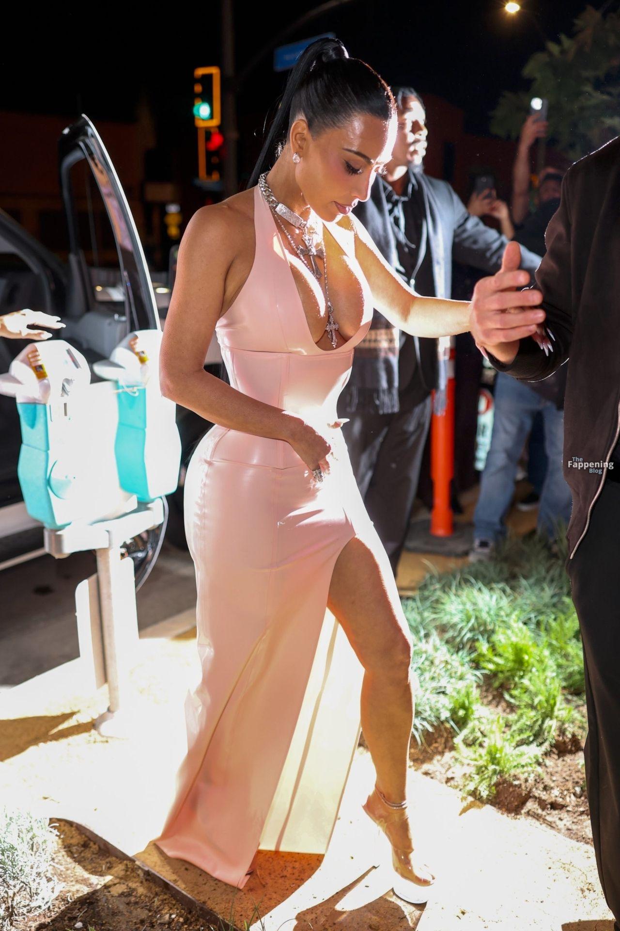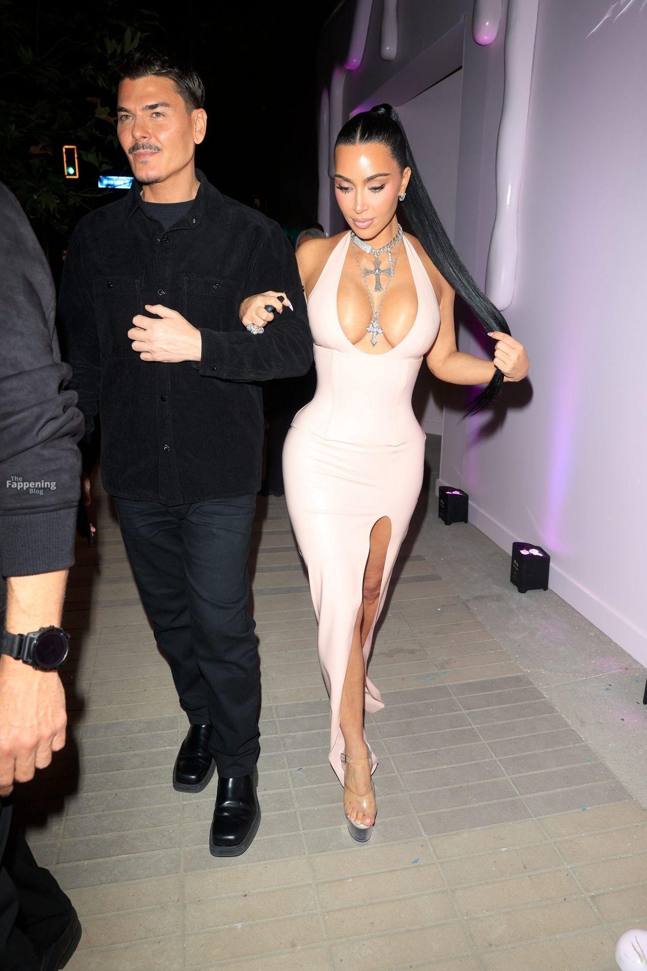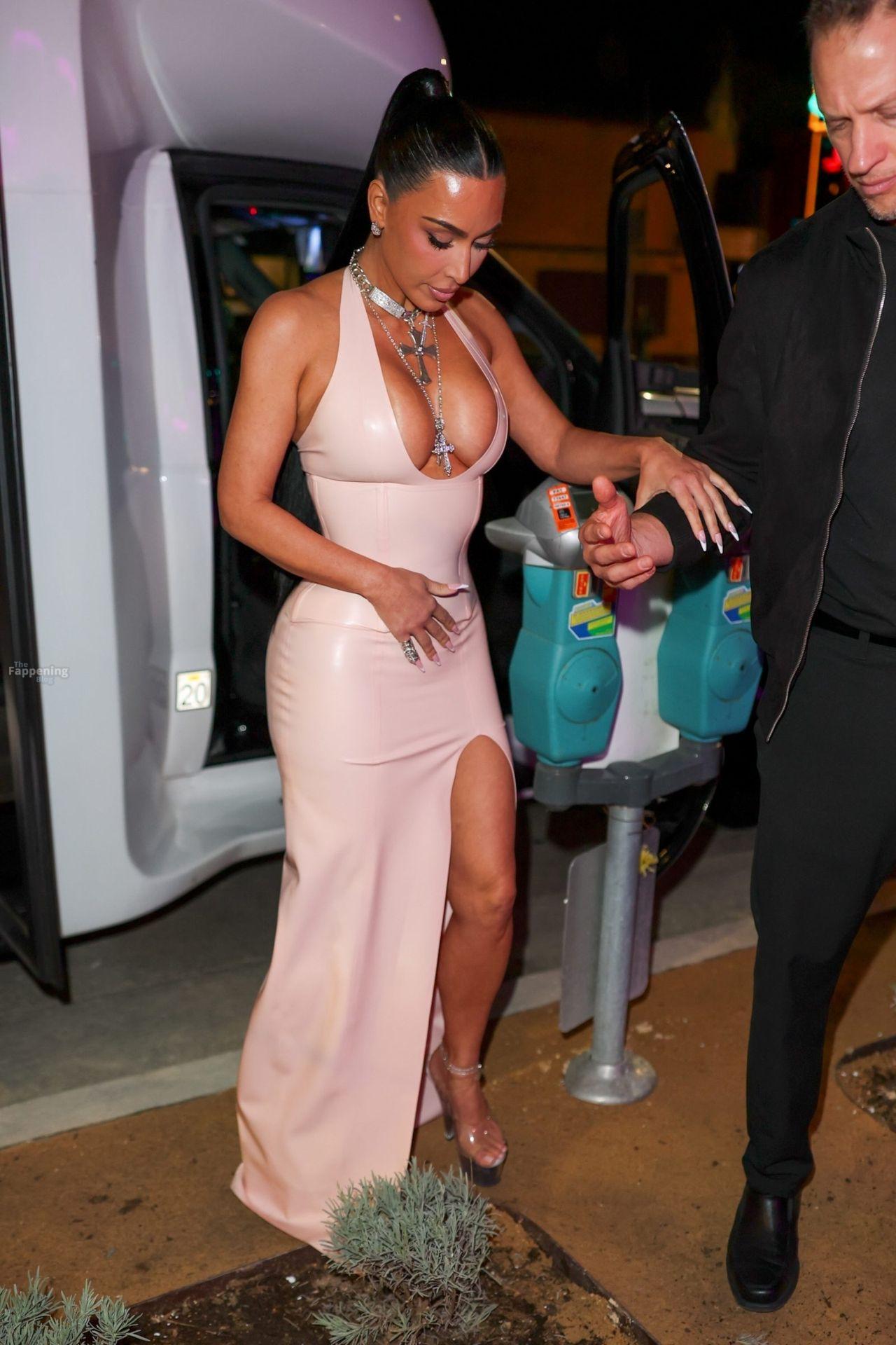 Kim Kardashian showed up at Kylie’s Pop Up Kylie Cosmetics event in West Hollywood, rockin’ a latex dress that had her tits and ass practically burstin’ out.