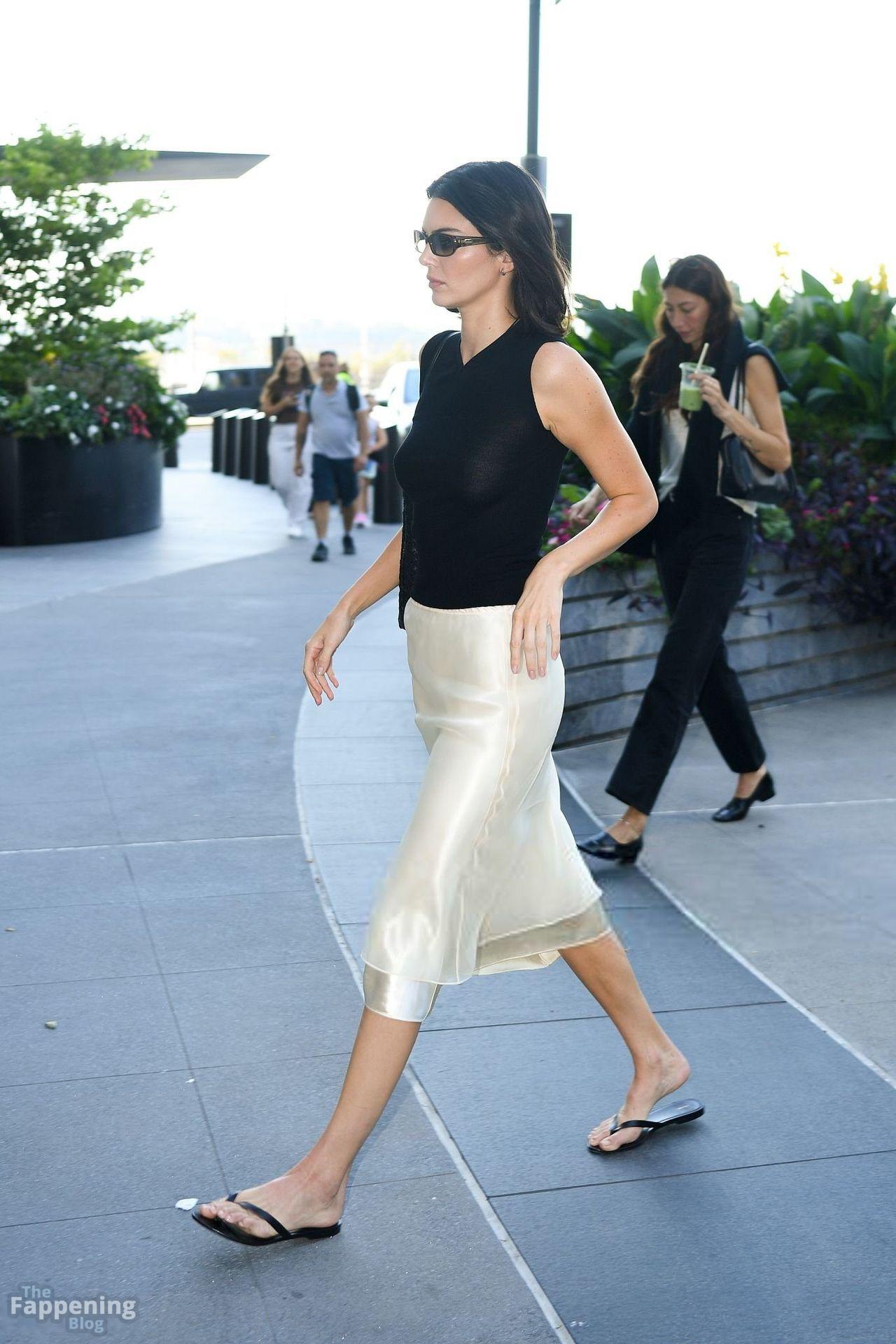 Braless Kendall Jenner stunned Manhattan in a sheer top, flashin’ her nipples.
