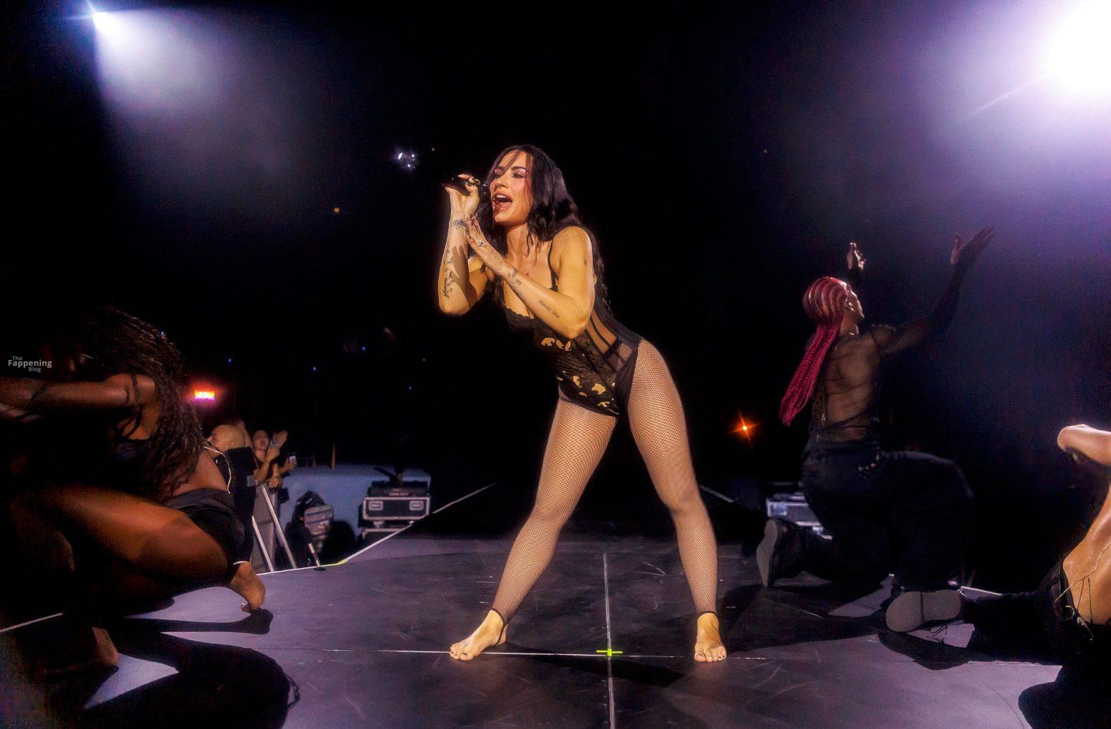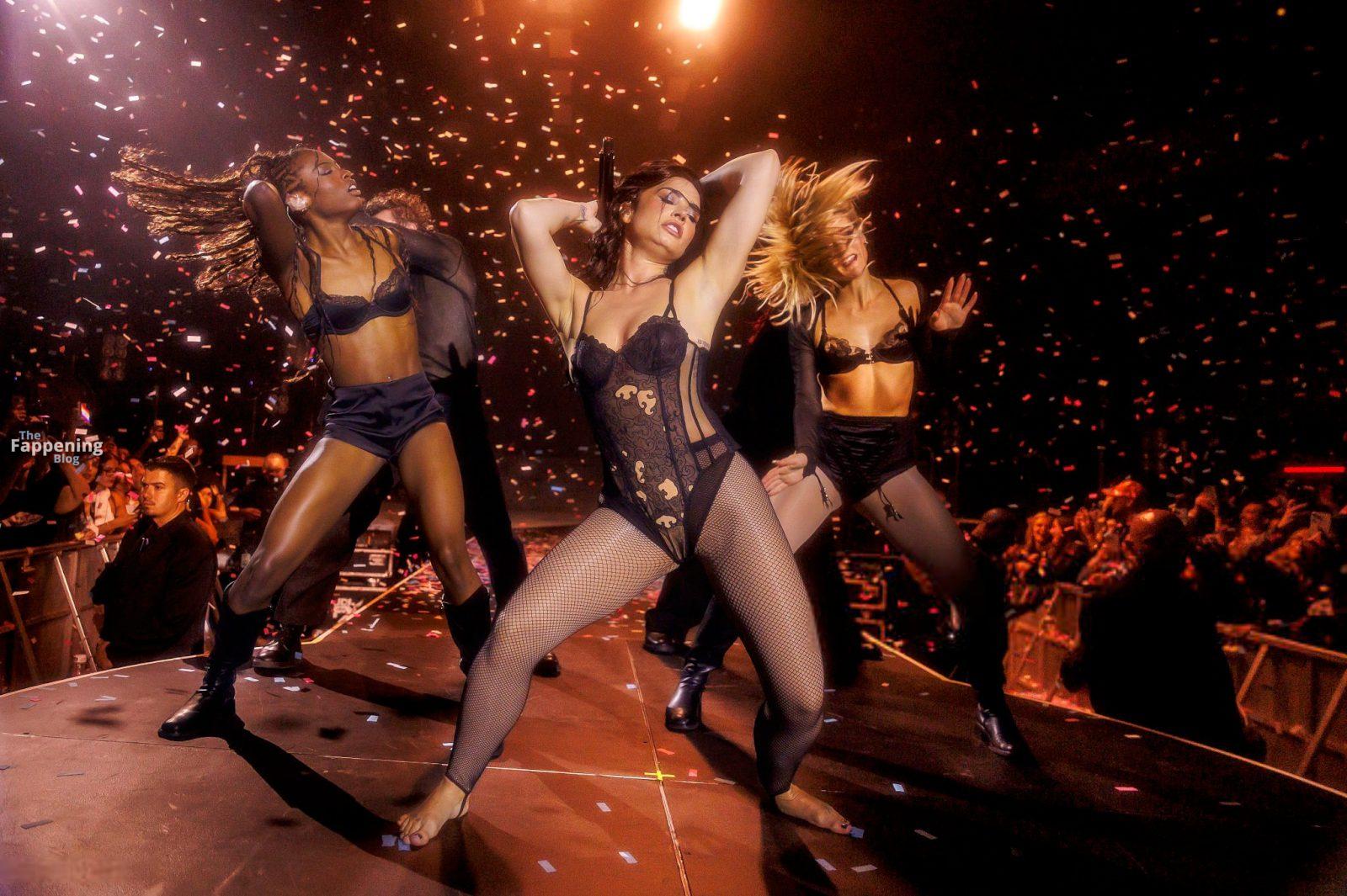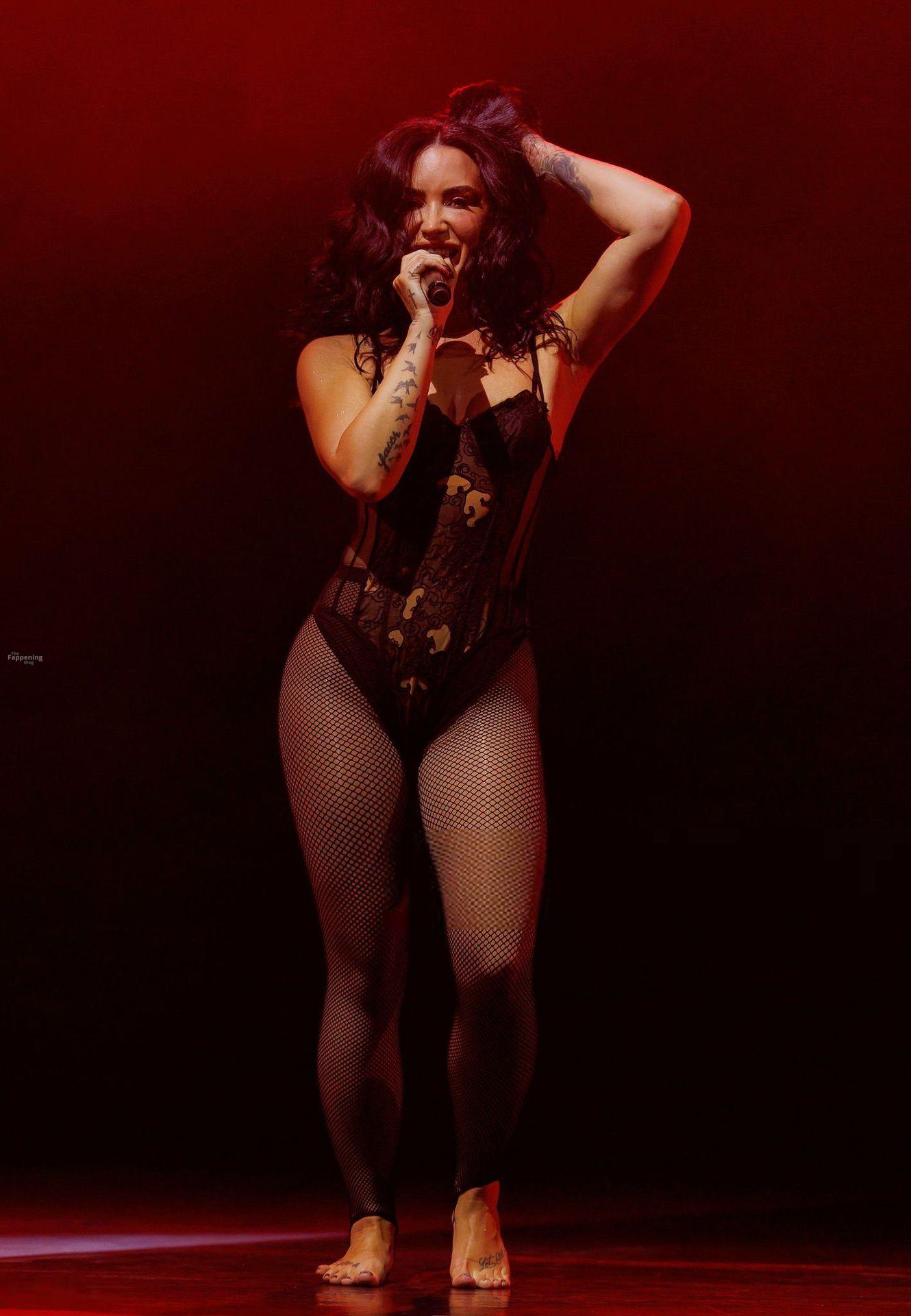 Peep Demi Lovato’s performance at the Hollywood Palladium. She hit the stage in a sheer bodysuit and fishnets.