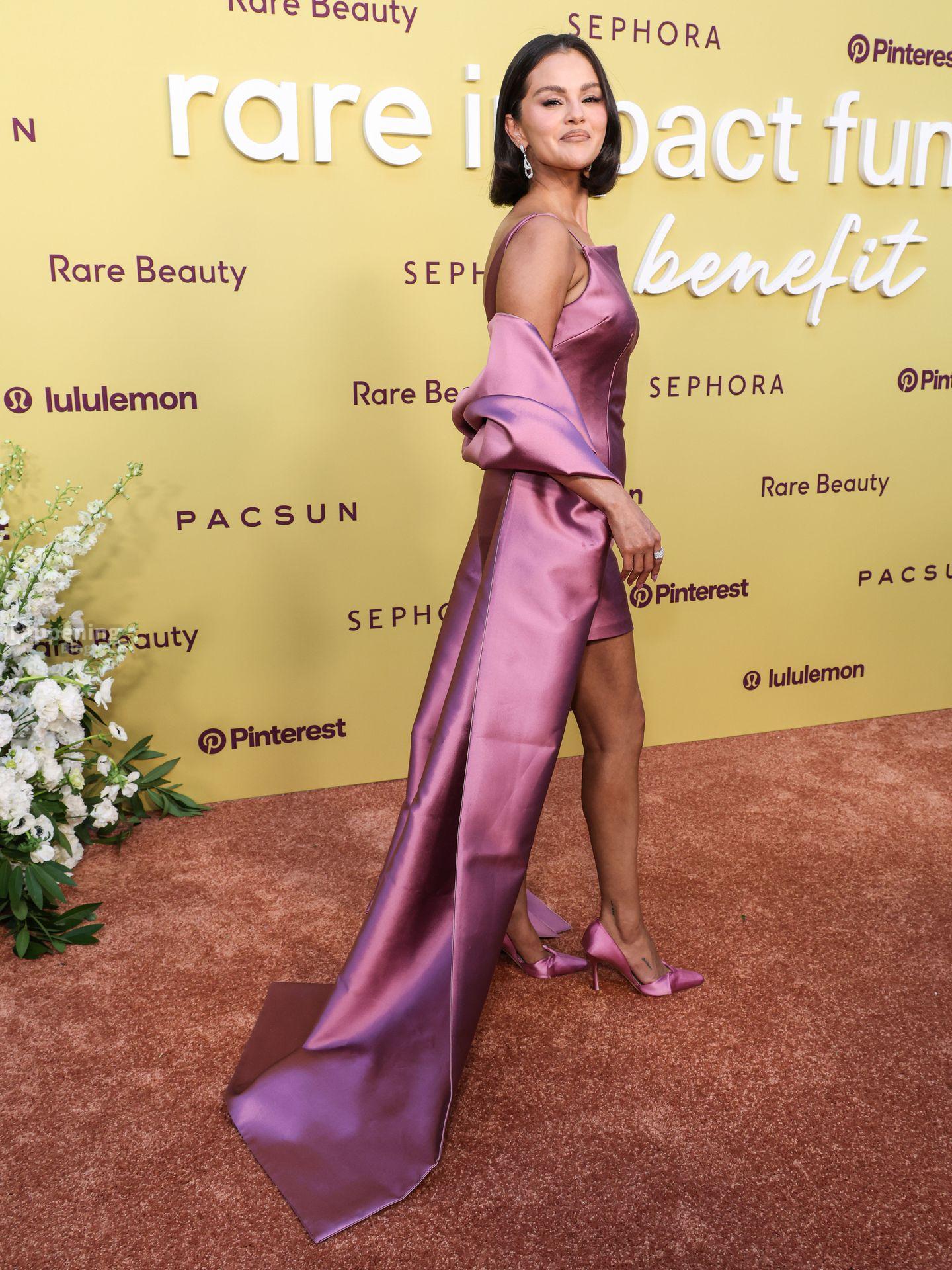 American actress, singer, producer, songwriter, and businesswoman Selena Gomez lit up the 3rd Annual Rare Impact Fund Benefit in Hollywood, rockin’ a rose satin mini that showed off her stunning legs .