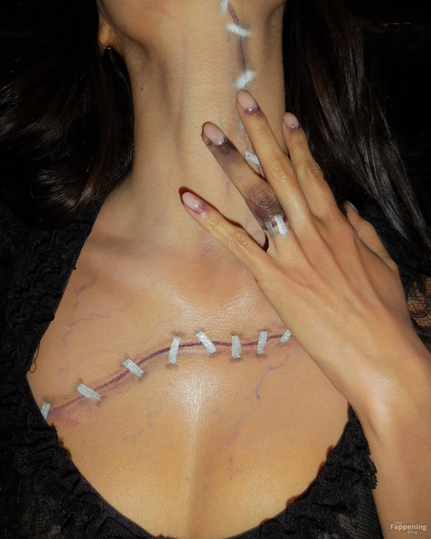 Brazilian model Gizele Oliveira was at Heidi Klum’s 24th annual Halloween party in New York City. She cosplayed Dolores, inspired by Monica Bellucci’s character from “Irreversible”, in a sheer black lace dress that left little to the imagination. No lingerie underneath, she wasn’t shy about flashin’ her nude tits in the revealing outfit.