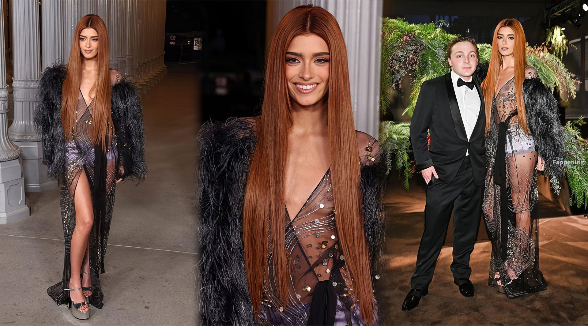 Dixie D’Amelio showed up at the 2025 LACMA Art+Film Gala in LA, rockin’ a transparent Gucci gown. Braless, her tits and nipples were visible through the sheer fabric. The 24-year-old influencer attended the event at the Los Angeles County Museum of Art, presented by Gucci. See the pics below.