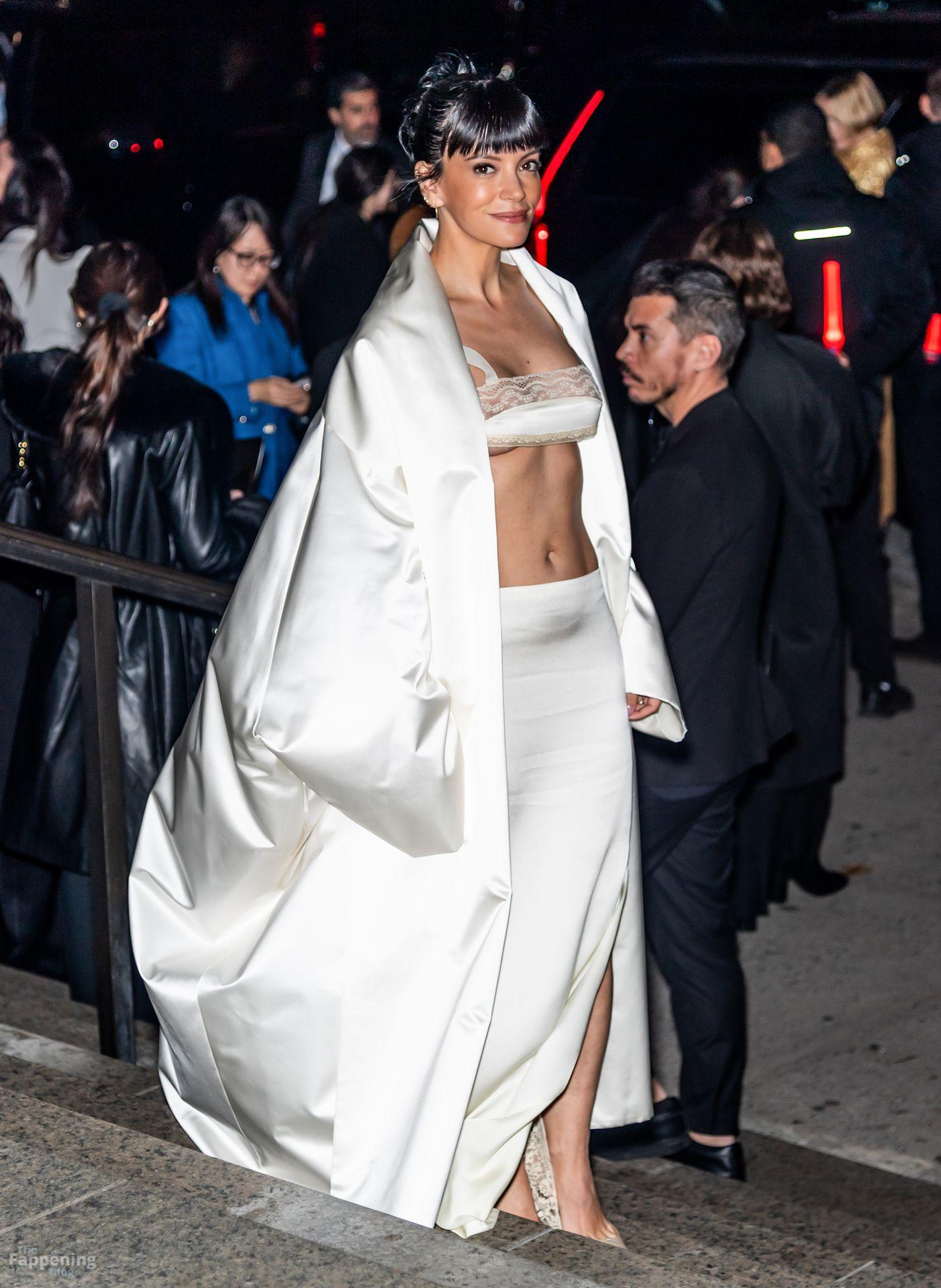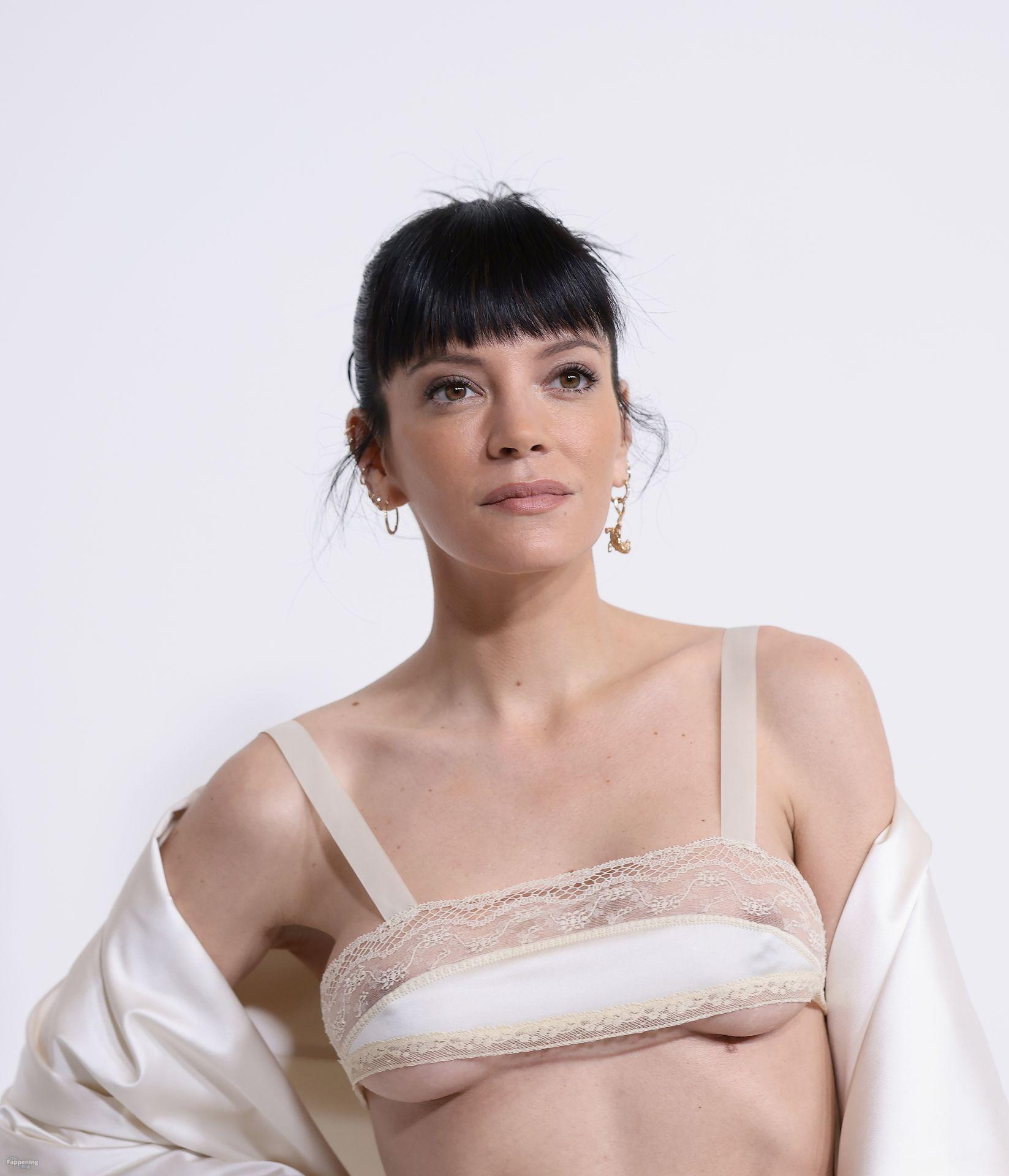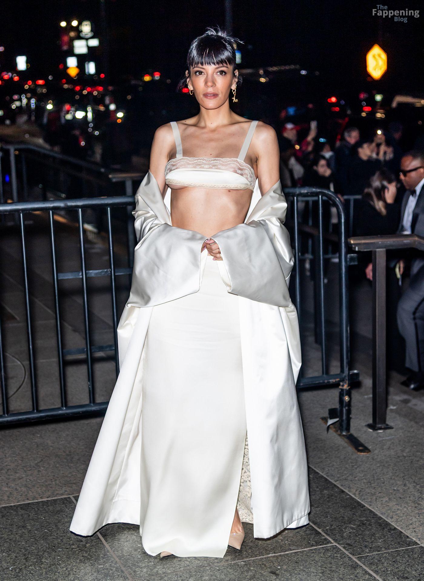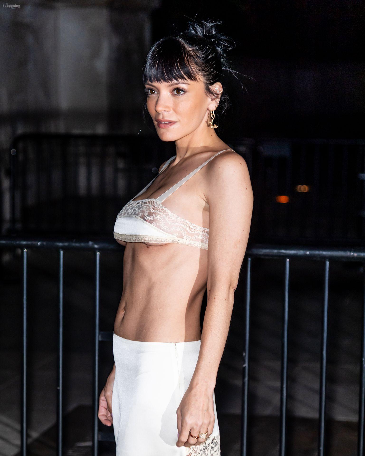 Lily Allen went braless in a see-through lace top at the CFDA Awards 2025. Her areola showed through the fabric, almost causin’ a nip slip.