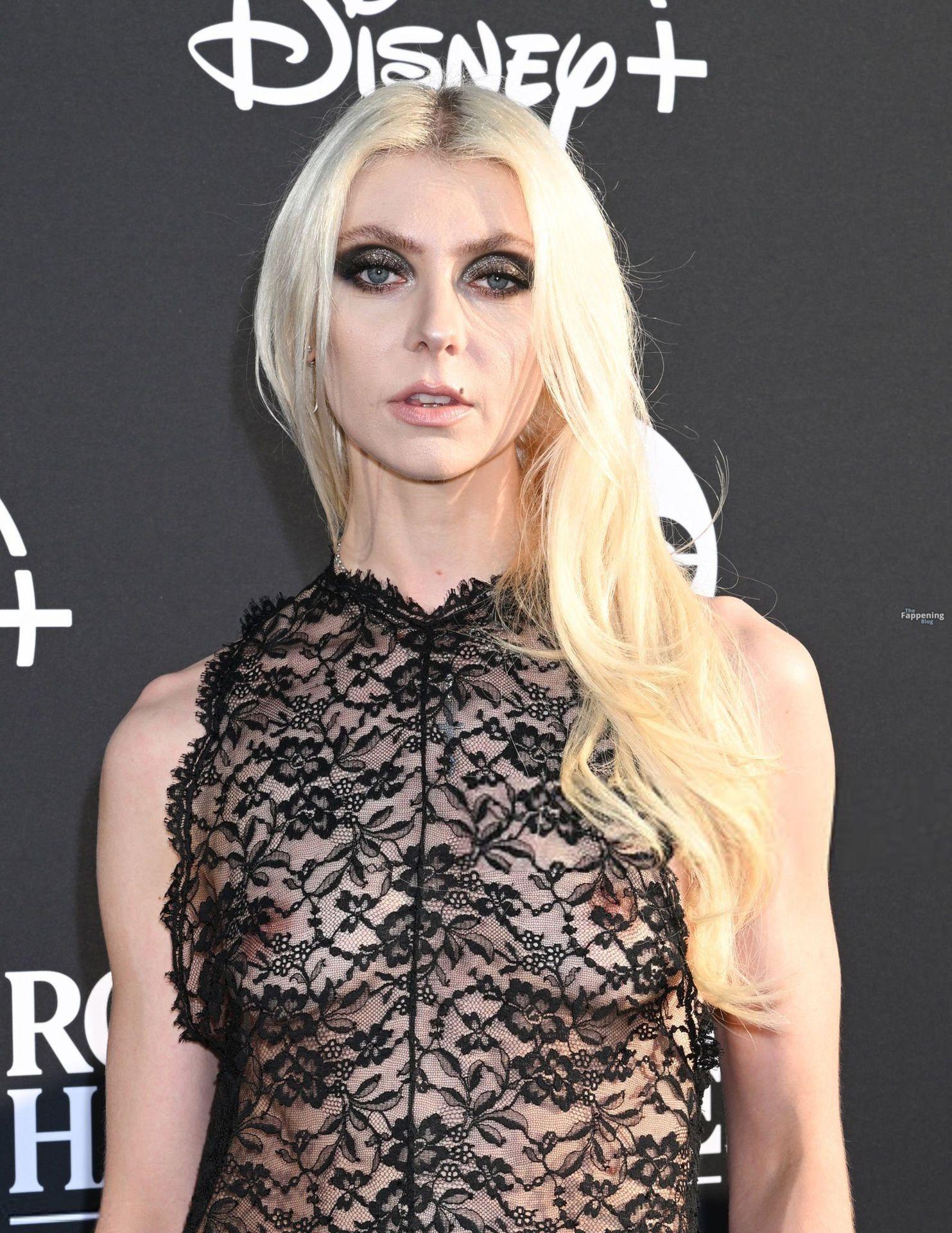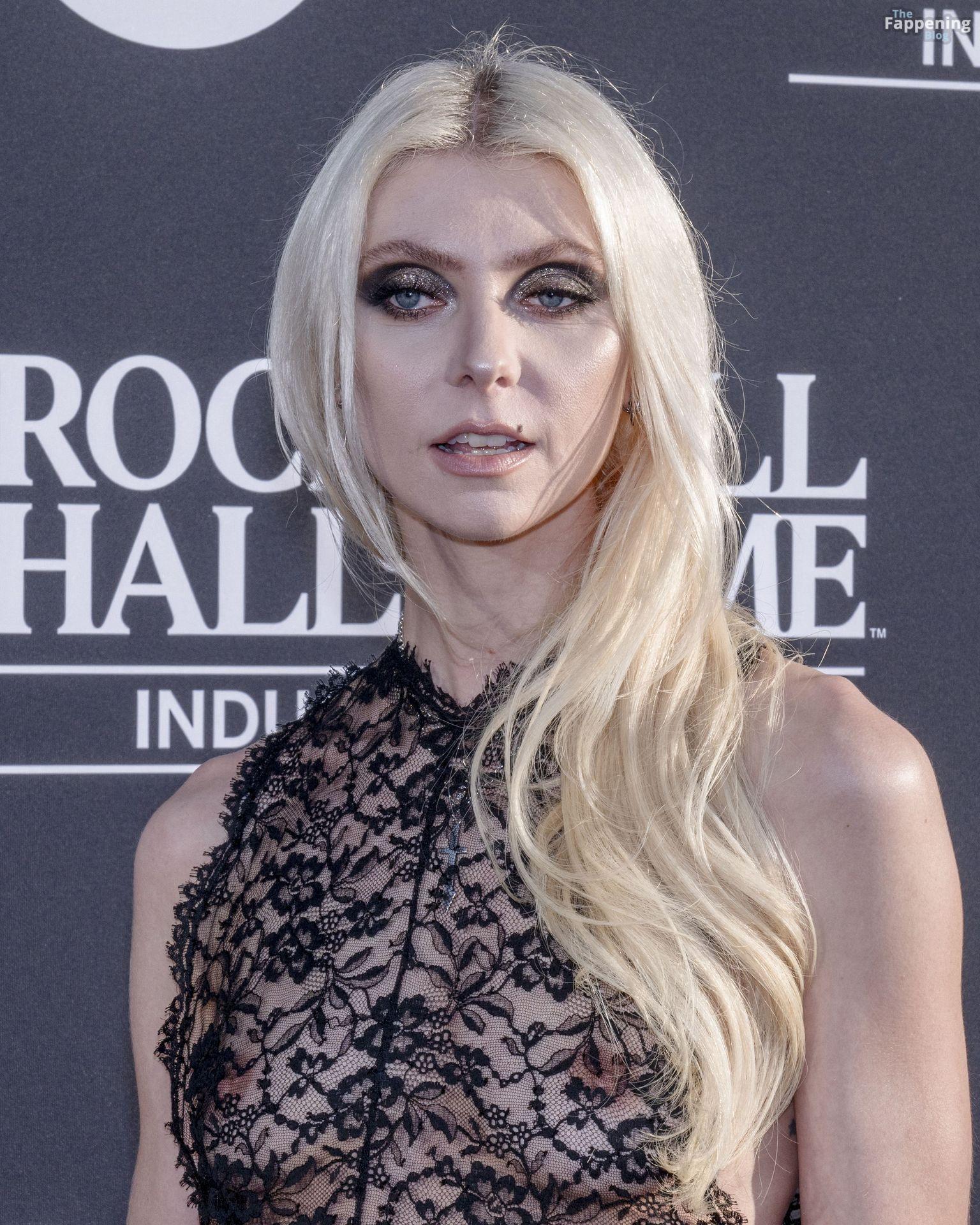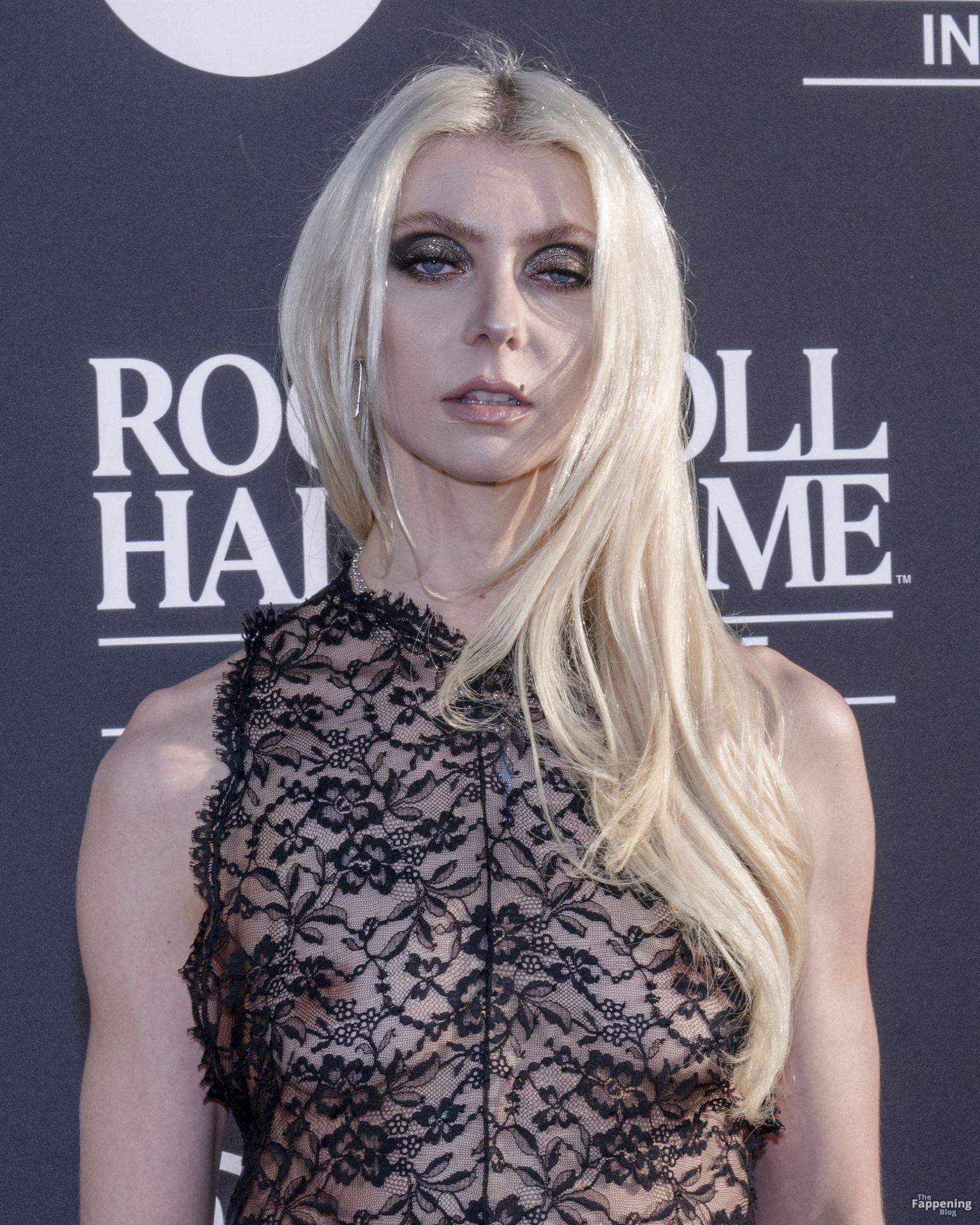 Taylor Momsen, the lead singer of The Pretty Reckless, rolled up to the Rock & Roll Hall of Fame Induction Ceremony in LA on November 8, 2025, rockin’ a sheer black lace halter gown that left her nude tits on full display.