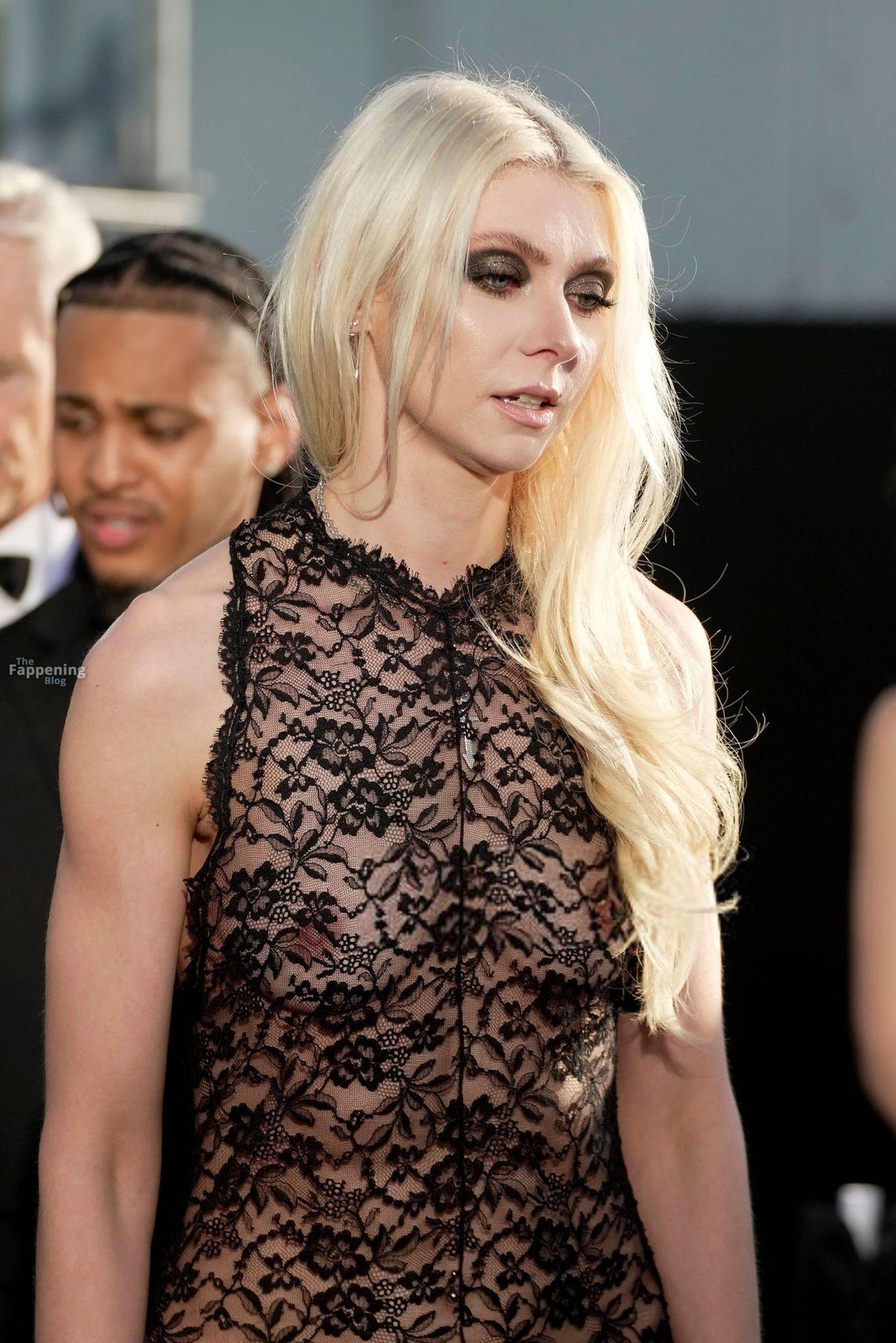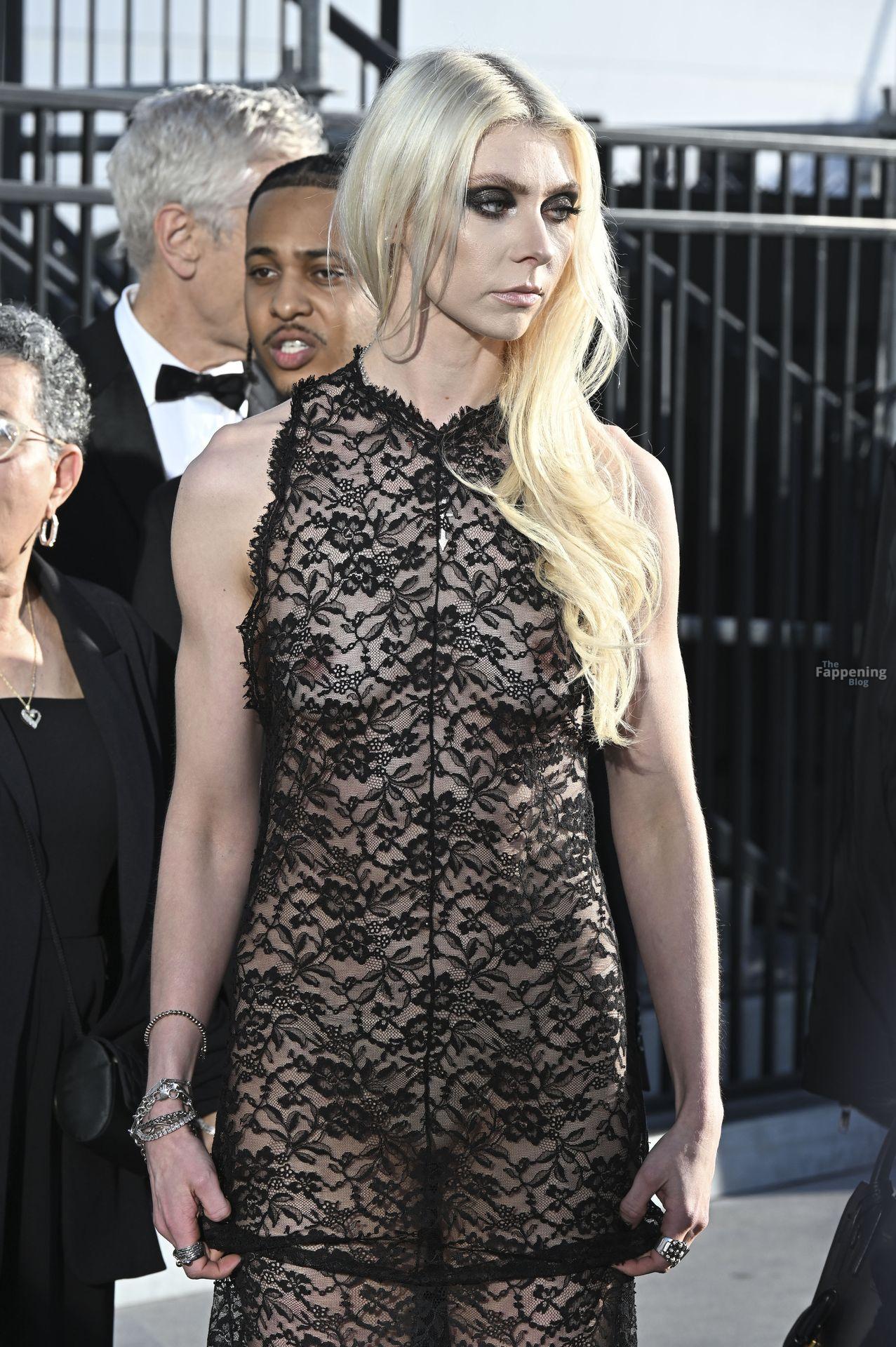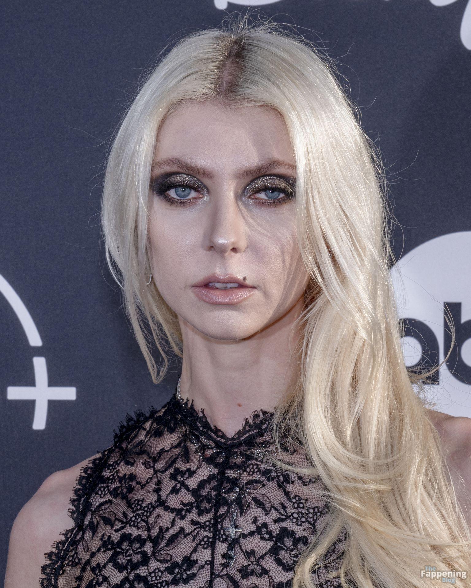 Taylor Momsen, the lead singer of The Pretty Reckless, rolled up to the Rock & Roll Hall of Fame Induction Ceremony in LA on November 8, 2025, rockin’ a sheer black lace halter gown that left her nude tits on full display.