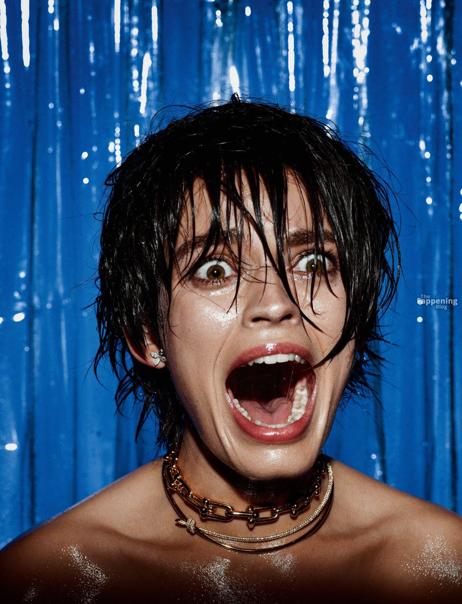 French-British actress Emma Mackey posed for Flaunt magazine’s 2022 shoot by Martin Aleman, wearin’ a sheer bodysuit that left her nude tits on display.