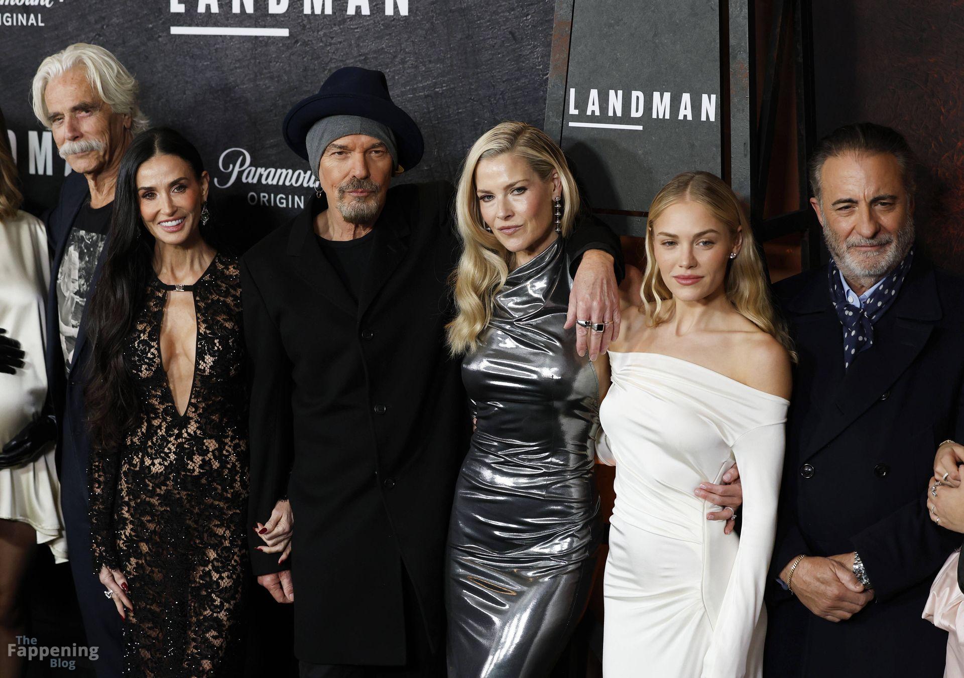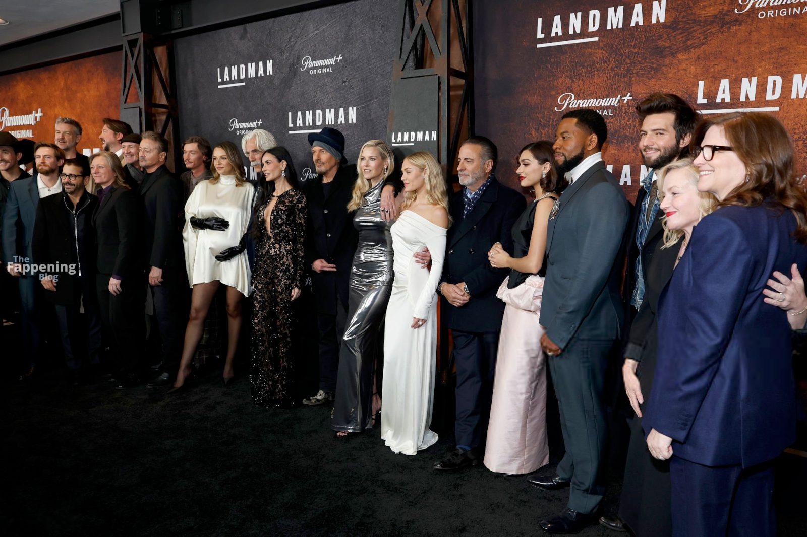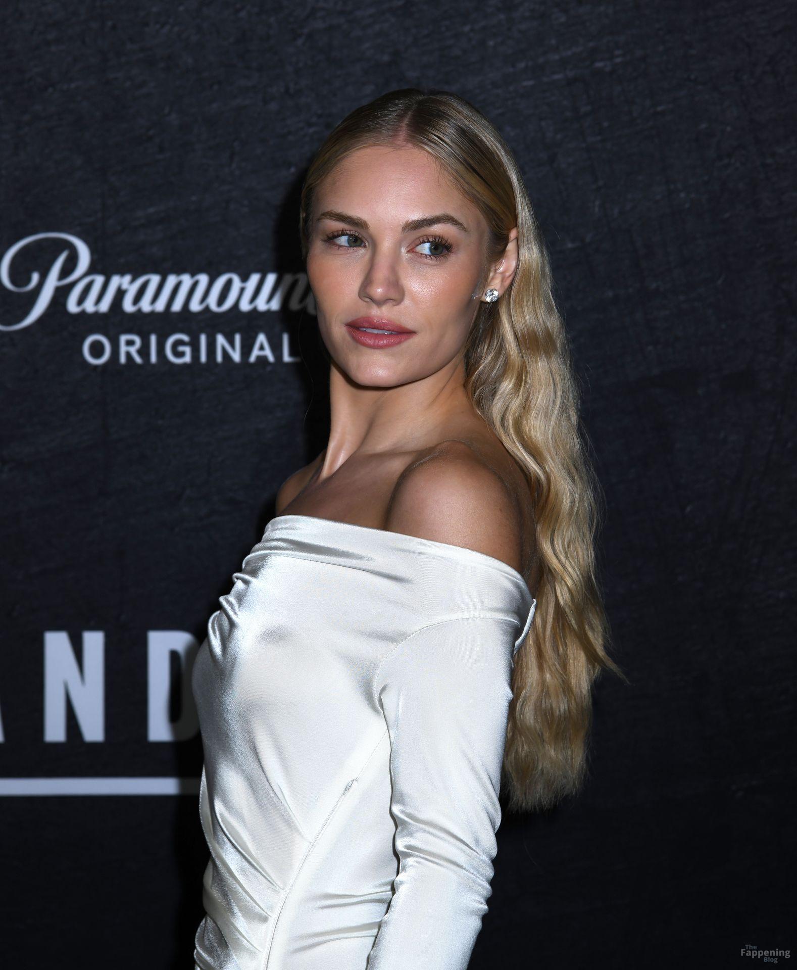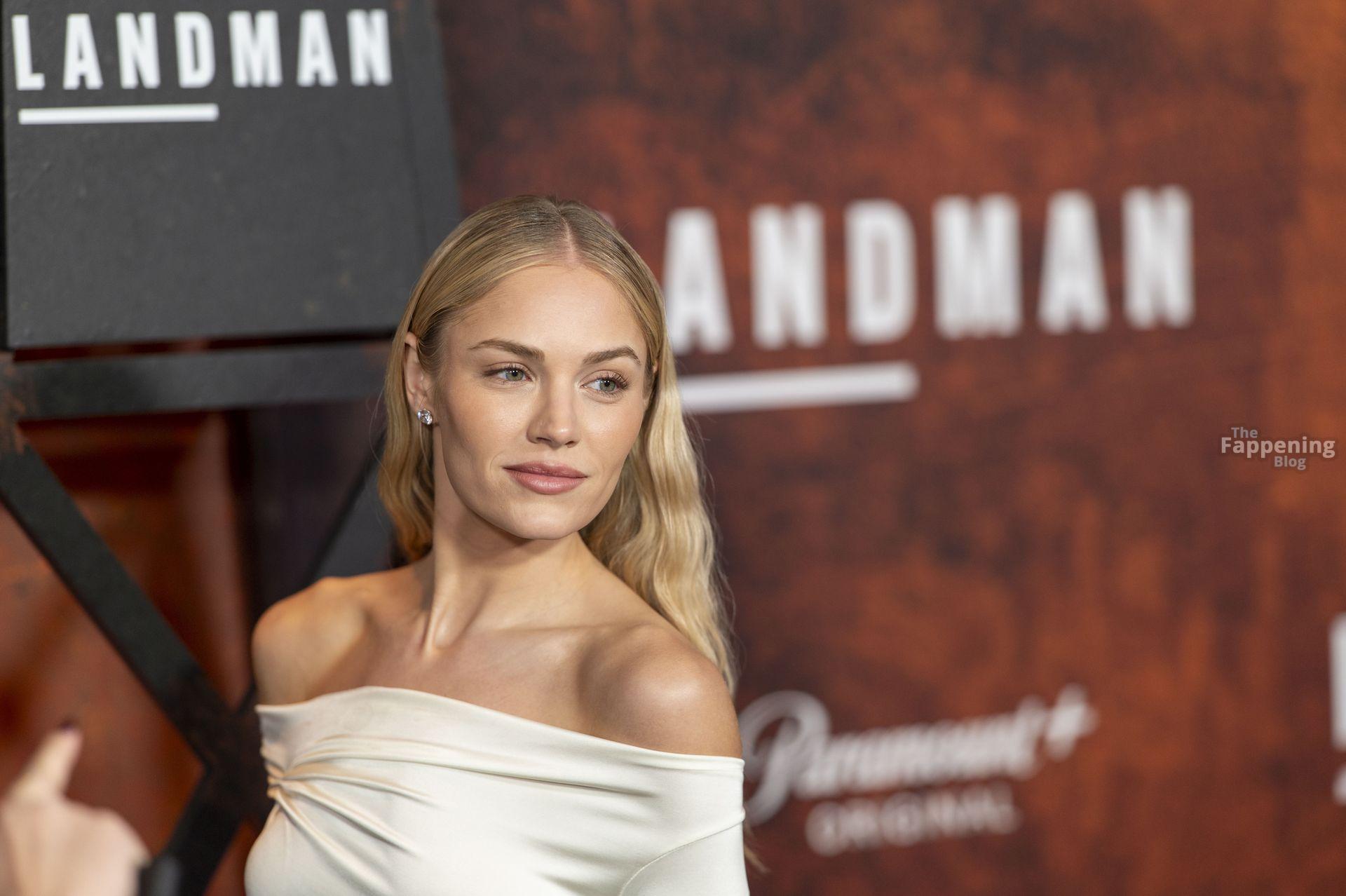 American blonde model and actress Michelle Randolph was in a skin-tight, off-shoulder dress at the “Landman” season 2 premiere in NYC.
