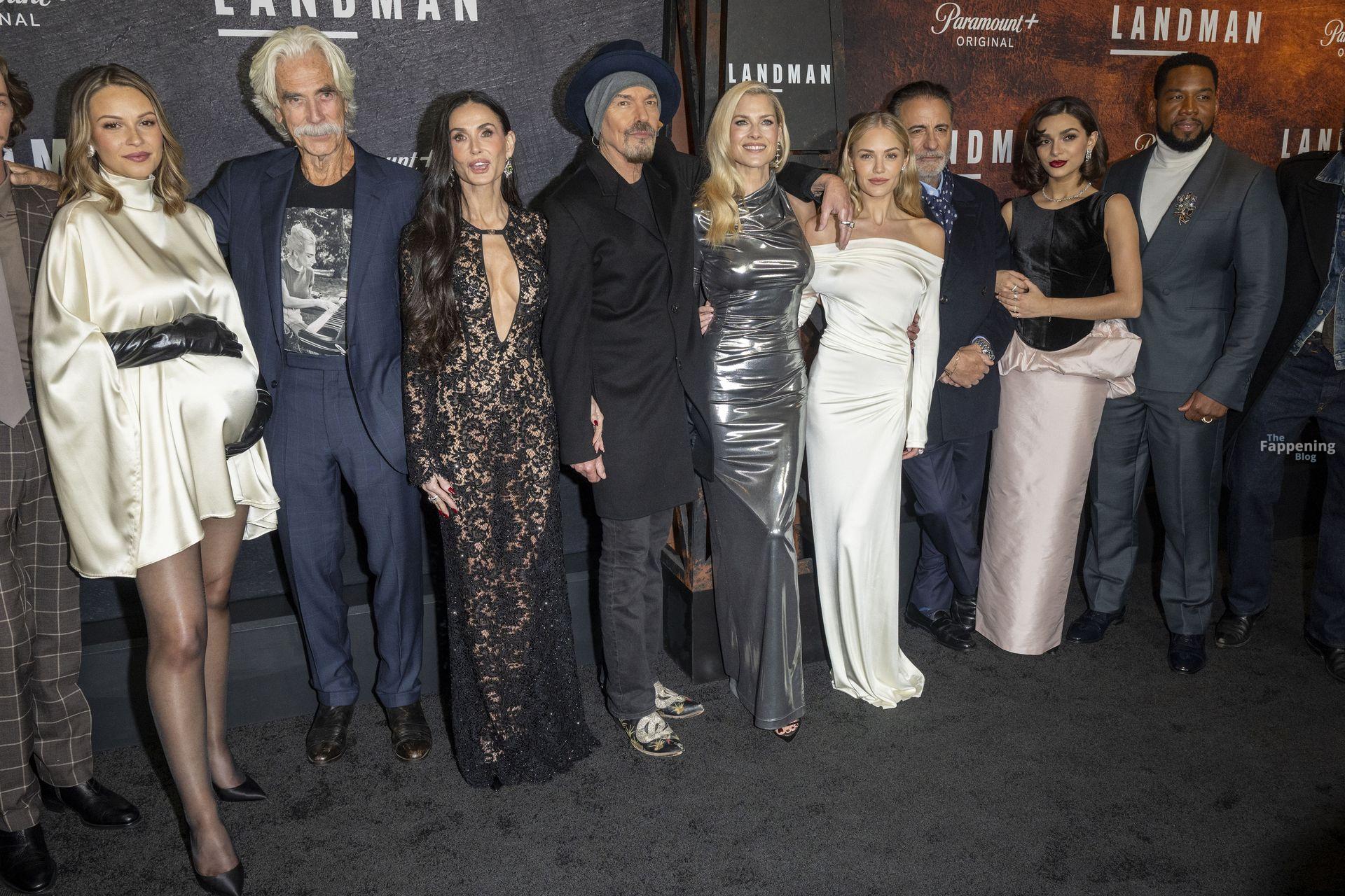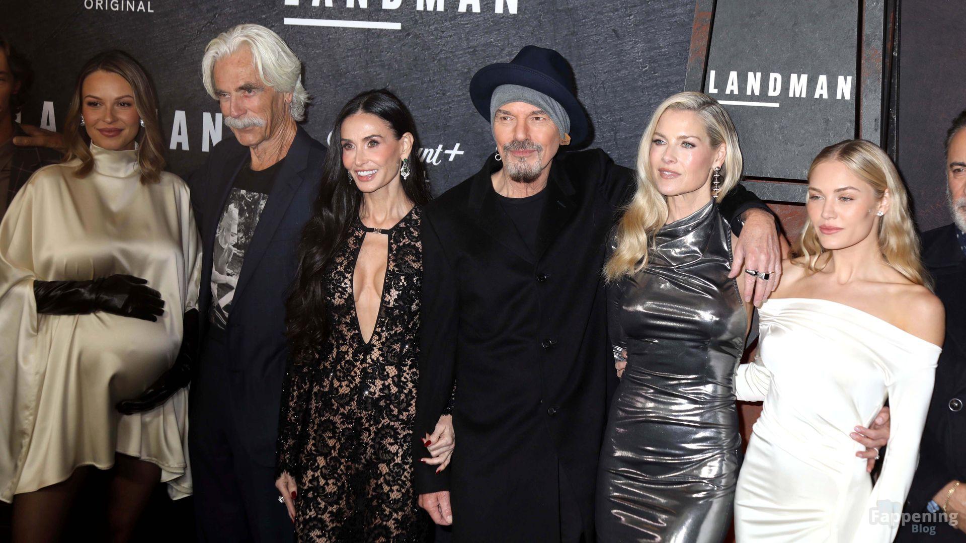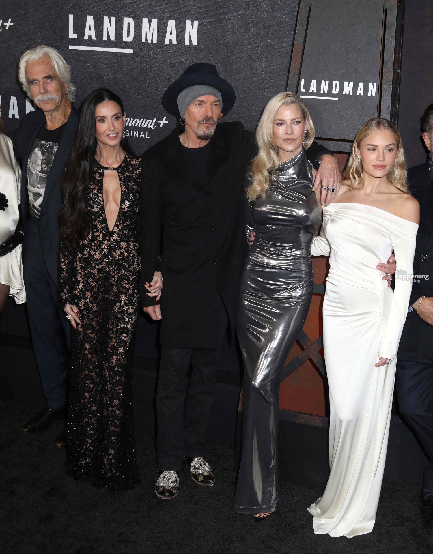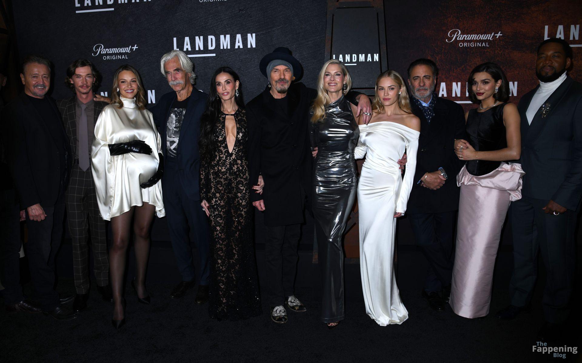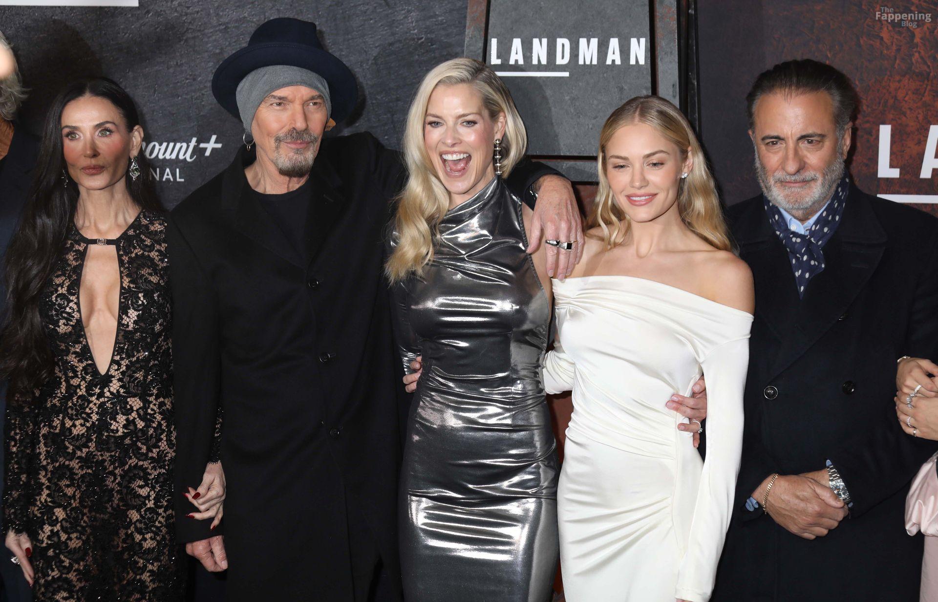 American blonde model and actress Michelle Randolph was in a skin-tight, off-shoulder dress at the “Landman” season 2 premiere in NYC.