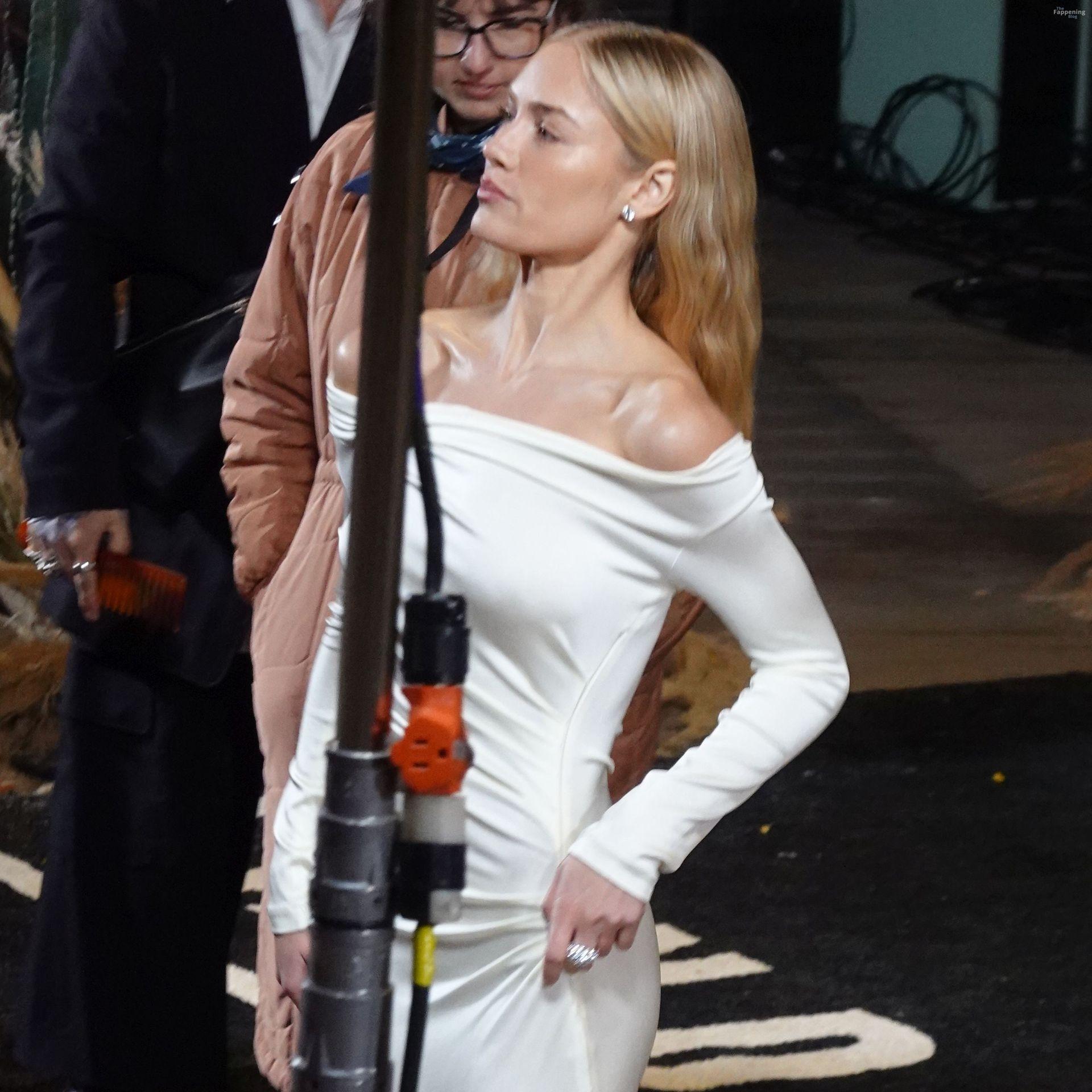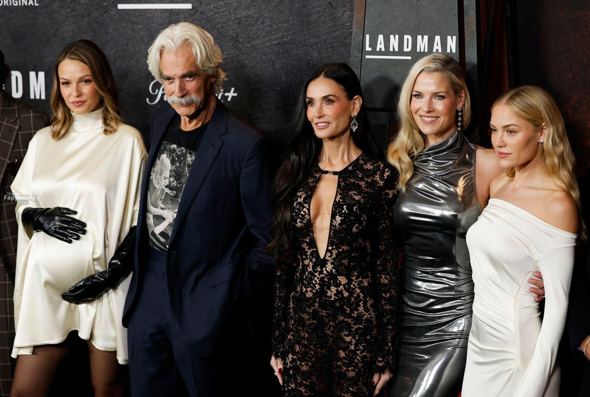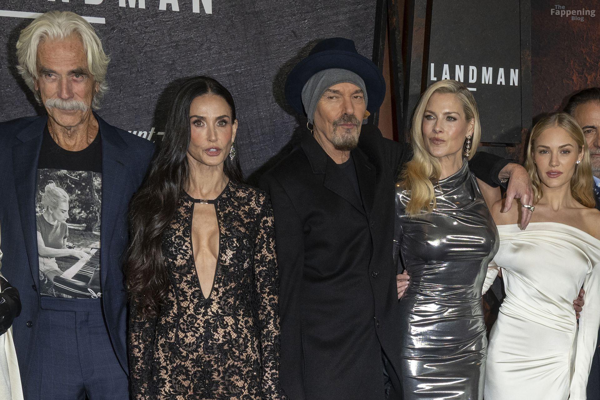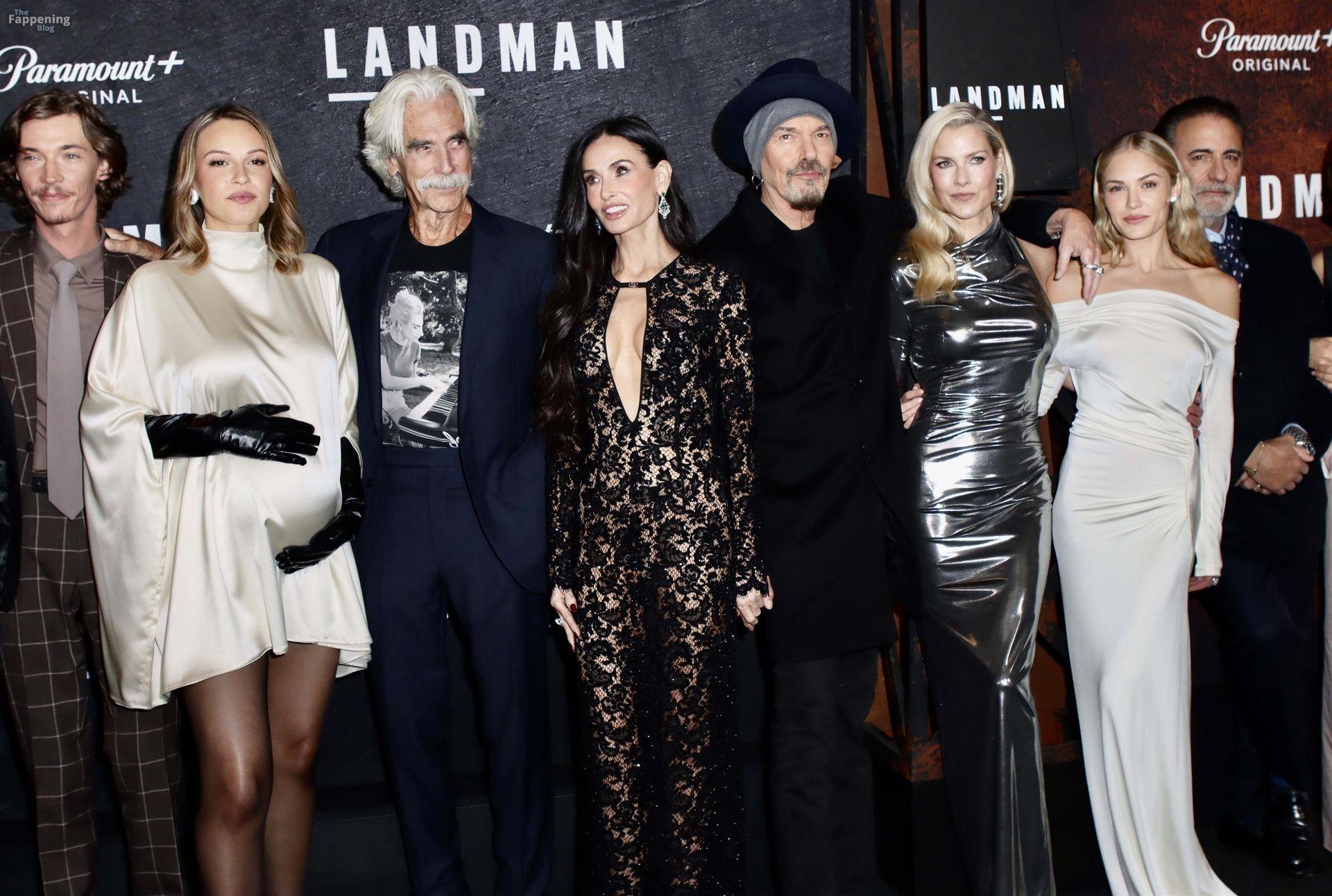 American blonde model and actress Michelle Randolph was in a skin-tight, off-shoulder dress at the “Landman” season 2 premiere in NYC.