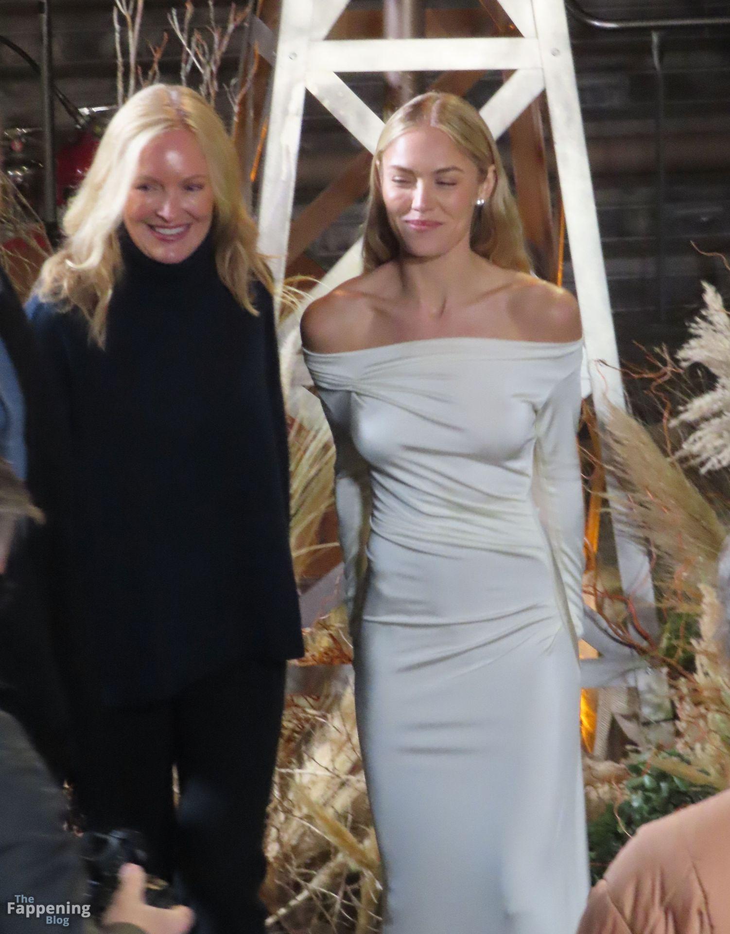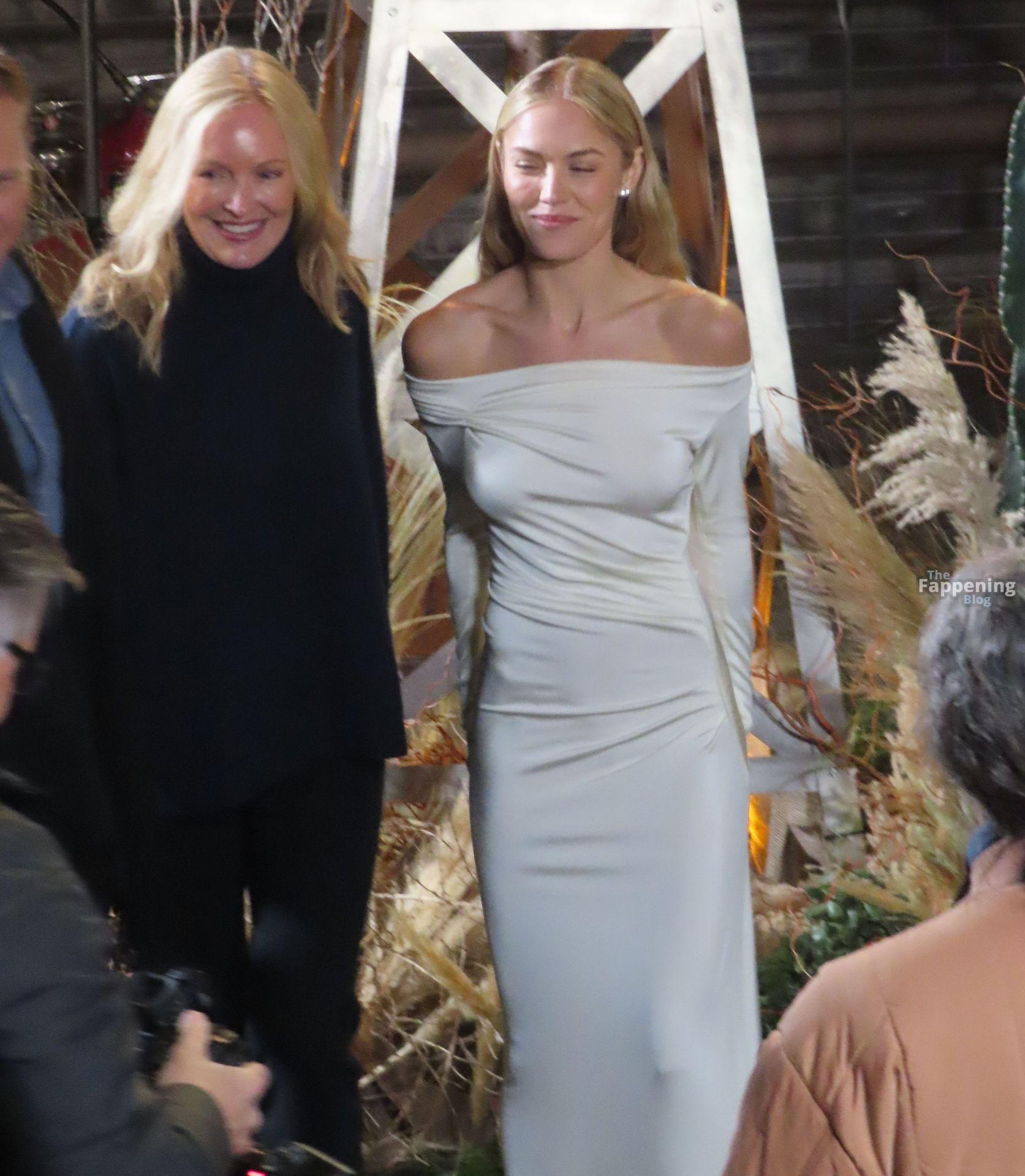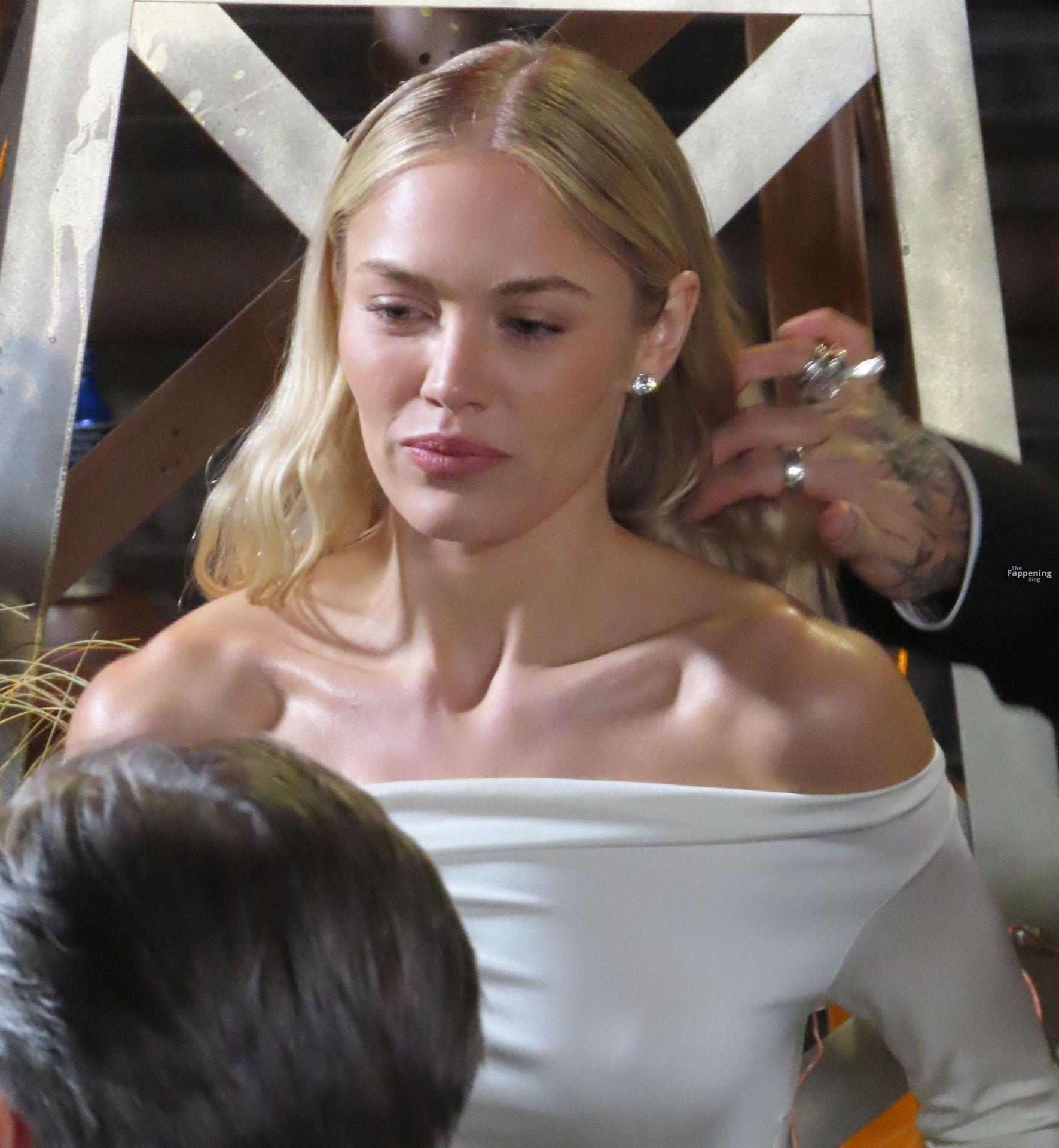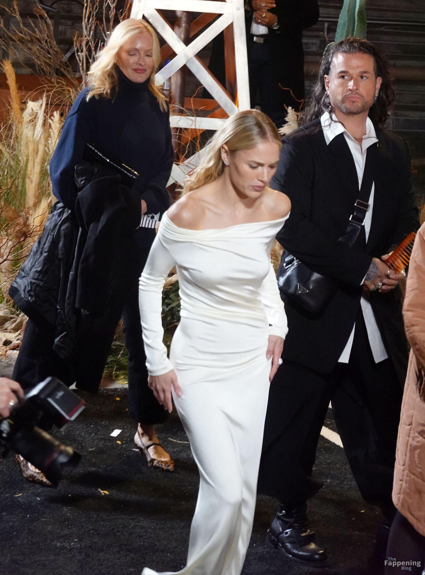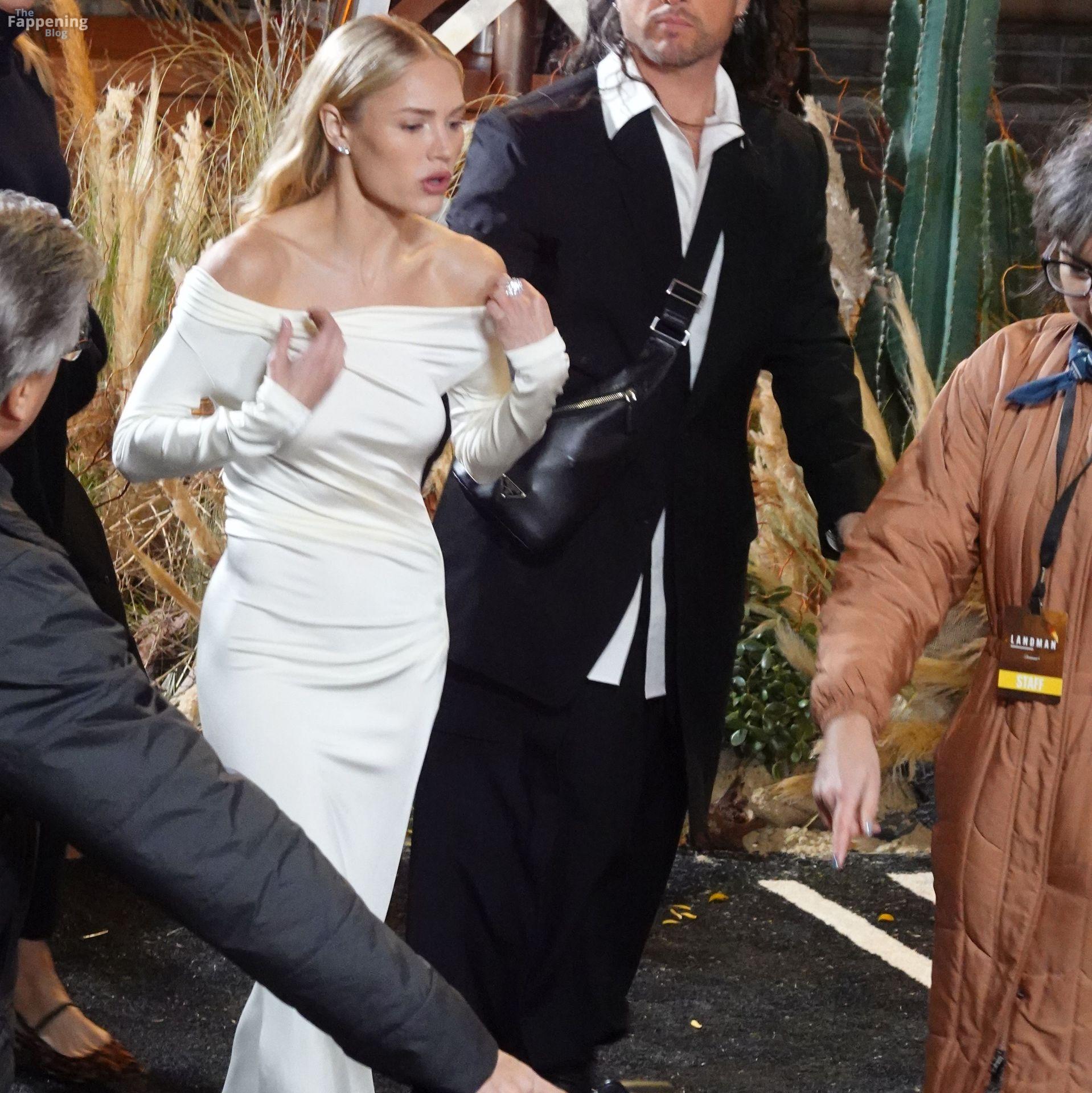 American blonde model and actress Michelle Randolph was in a skin-tight, off-shoulder dress at the “Landman” season 2 premiere in NYC.