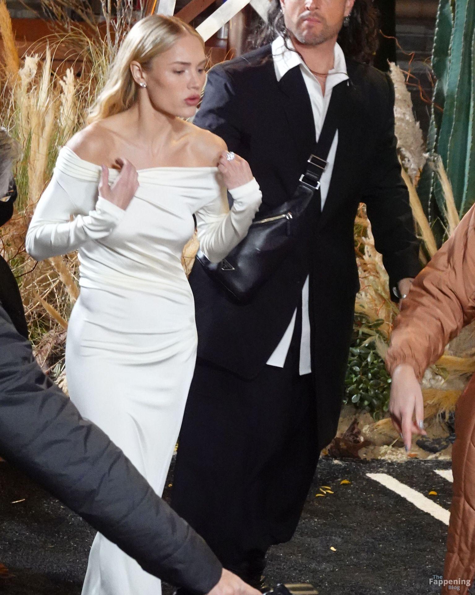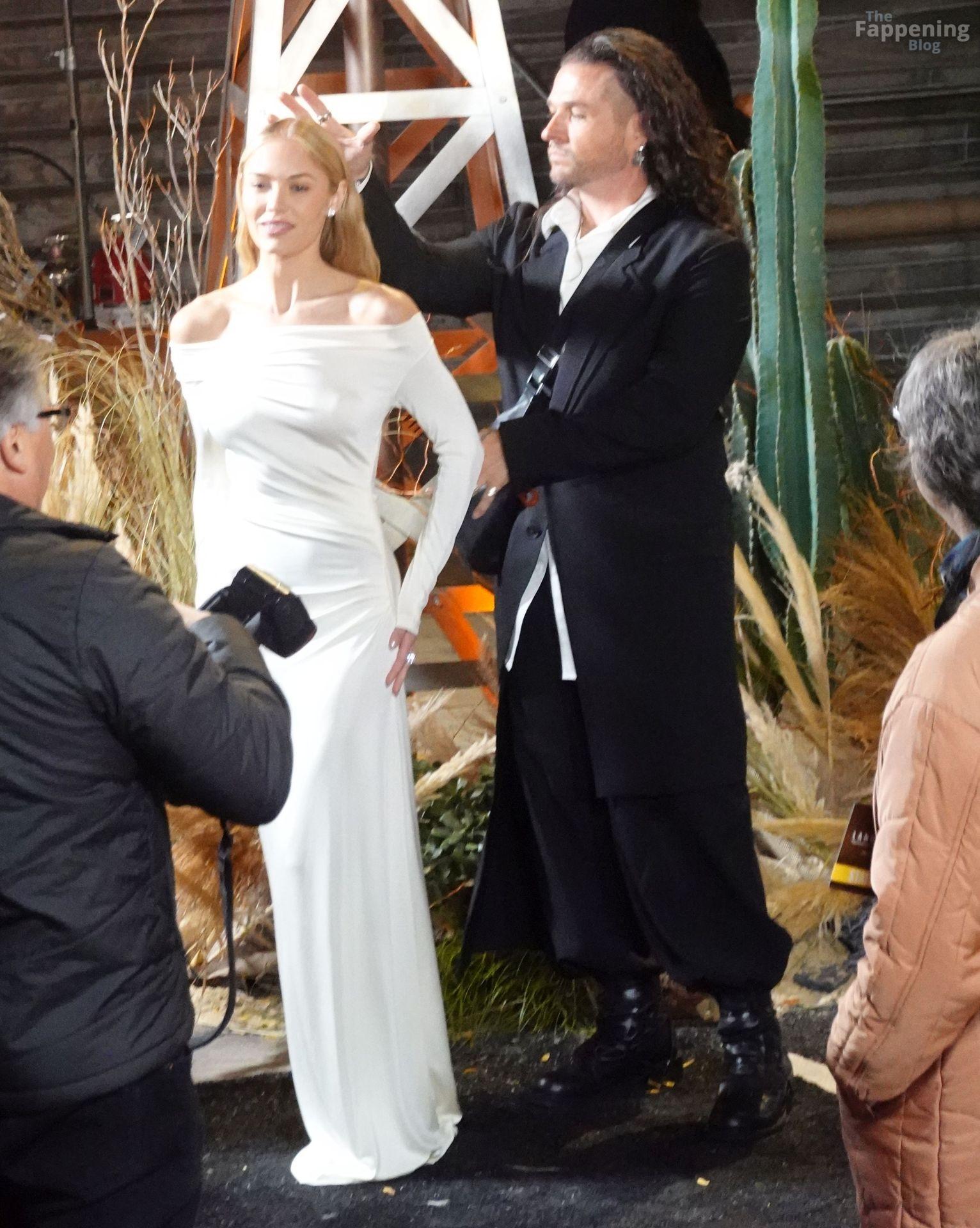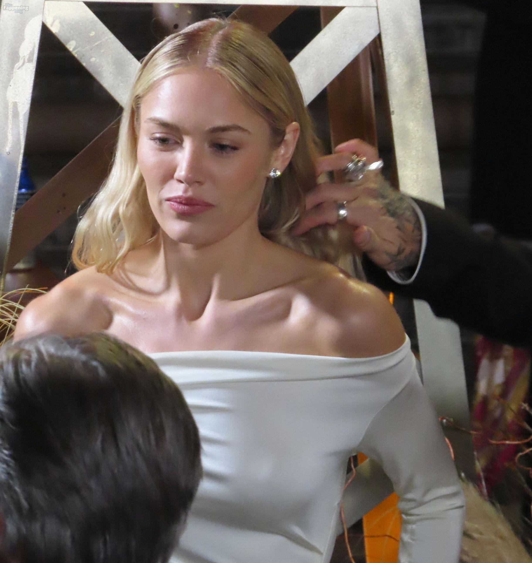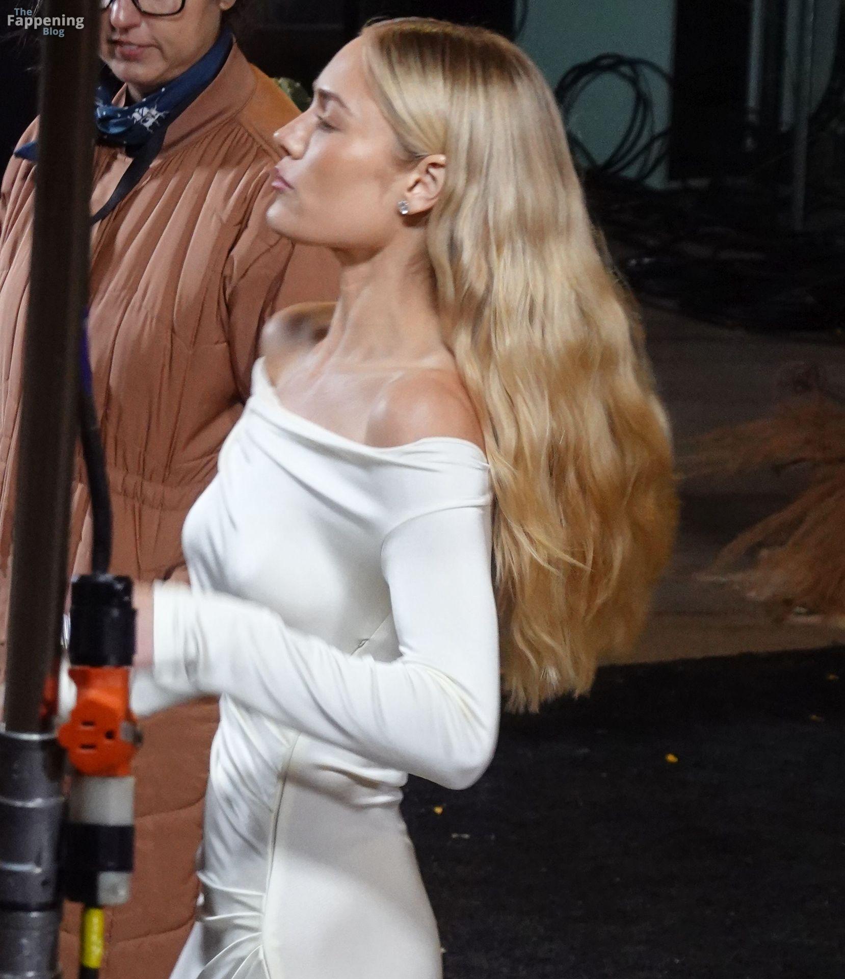 American blonde model and actress Michelle Randolph was in a skin-tight, off-shoulder dress at the “Landman” season 2 premiere in NYC.