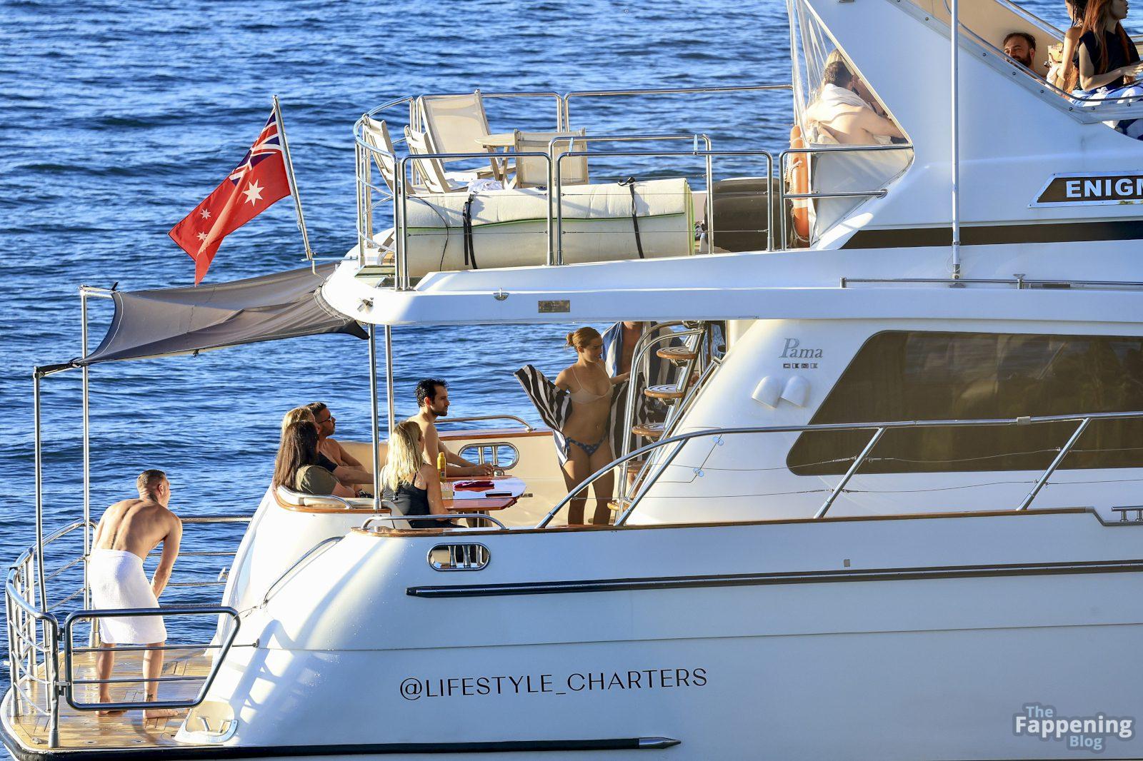TikTok star and singer Addison Rae flaunts her tits and ass in a tiny bikini on a Sydney yacht.