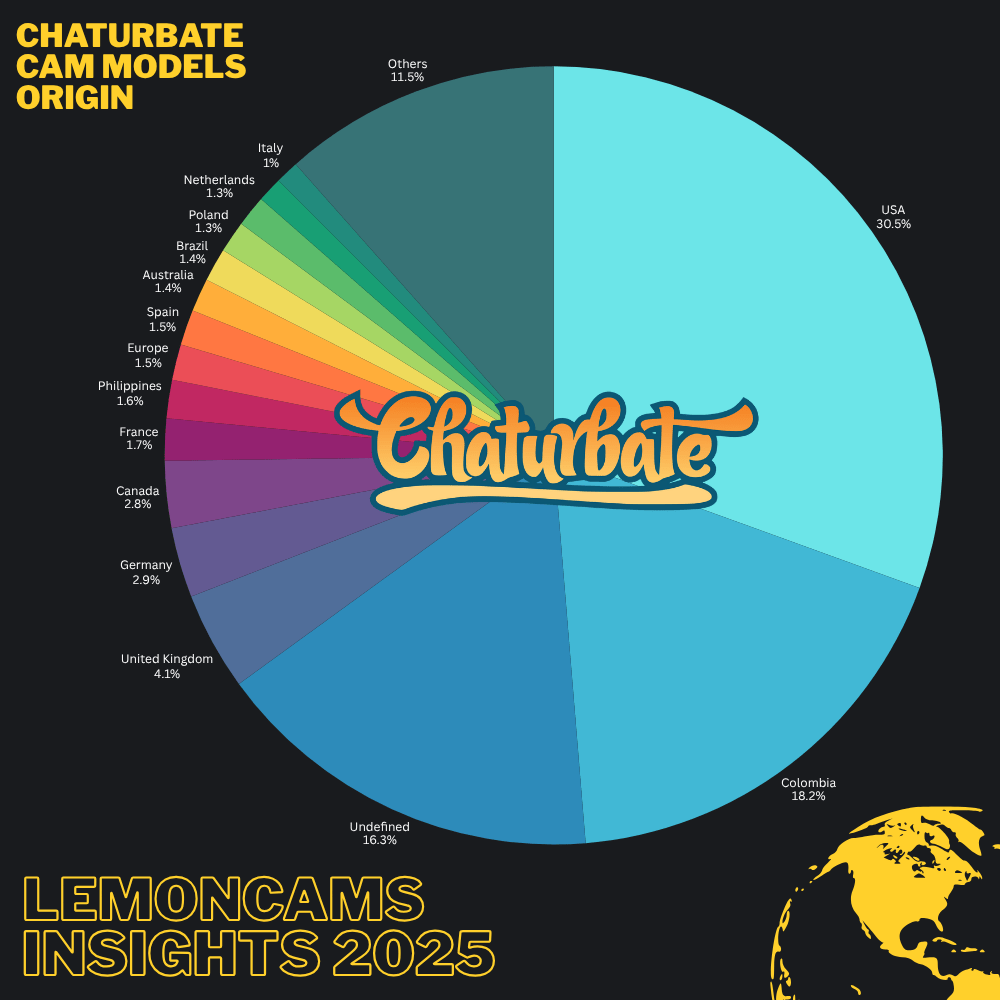 So, which countries produce the majority of cam models? Or where do cam models come from? Well, cam models’ global distribution reveals an interconnected and vibrant community. As per a year-long study conducted by Lemoncams, profiling over 1.6 million cam models, America brings the largest segment of cam performers.