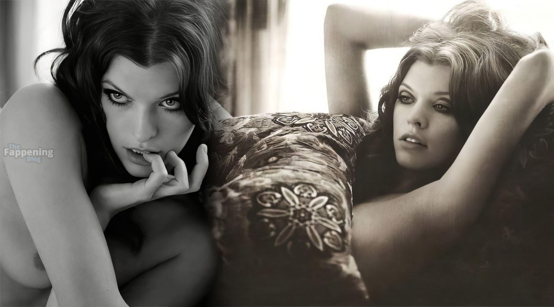 Actress Milla Jovovich strips completely nude and topless for Interview magazine (2009).